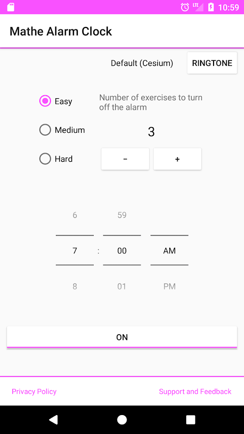โดยหน้าจอของผู้ใช้งาน (User Interface) ของแอปฯ นี้ไม่มีอะไรซับซ้อน เป็นแค่หน้าจอคำนวณตัวเลขของโจทย์เพื่อหาคำตอบแบบโล่ง ๆ ด้วยโทนสีขาว - ดำ - ชมพู การตั้งค่าภายในแอปฯ สามารถเลือกเสียงปลุกและความยากของโจทย์ได้ 3 ระดับตั้งแต่ง่ายไปถึงยาก และสามารถตั้งค่าได้ด้วยว่า เราจะต้องทำการแก้โจทย์กี่โจทย์เพื่อปิดนาฬิกาปลุก เรียกว่าแก้ไม่เสร็จก็ไม่ต้องลุกจากที่นอนกันเลยล่ะ
