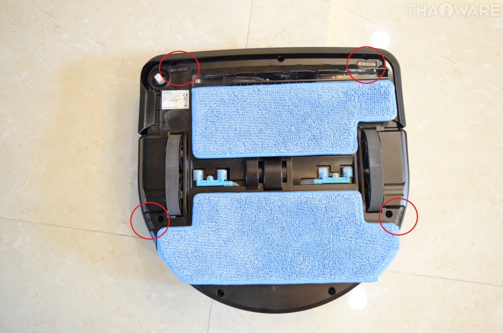 ส่วนผ้าขัดเป็นผ้าไมโครไฟเบอร์พิเศษหนา 3 ขั้น ช่วยซึมซับน้ำได้ดียิ่งขึ้น แถมยังถอดเปลี่ยนทำความสะอาดง่าย โดยผ้าส่วนบนจะทำหน้าที่ในการขัดแห้ง (Dry Mode) และผ้าส่วนท้ายเครื่องจะใช้ทำหน้าที่ถูพื้นหรือขัดเงา (Polish Mode, Stain Mode) มอเตอร์มีแรงกด 1.8 kg ความเร็วในการขัดถู 900 ครั้ง / นาที สามารถจัดการคราบสิ่งสกปรกได้ดี เว้นแต่เป็นคราบฝังแน่น ผมแนะนำว่าใช้แรงคนน่าจะดีกว่า