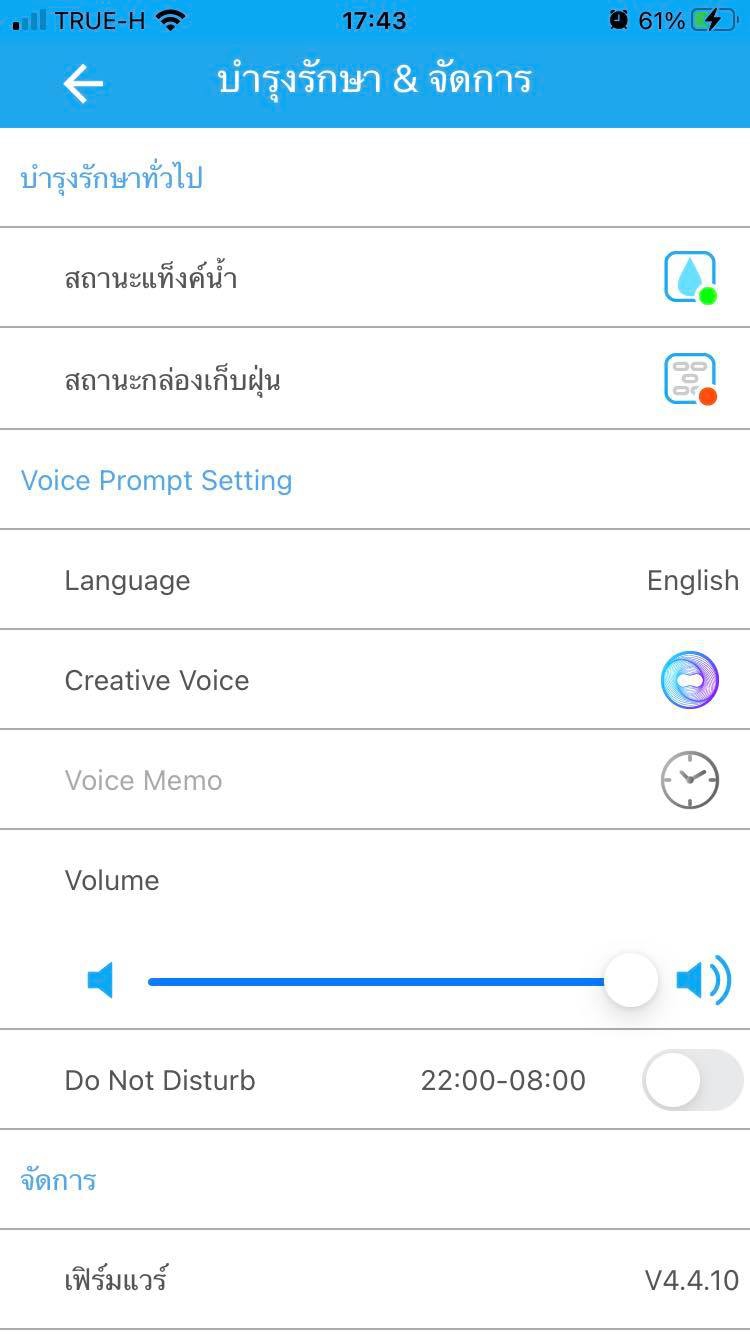 บนตัวแอปพลิเคชัน นอกจากจะมีโหมดทำงานให้ควบคุมหลายโหมด เรายังสามารถใช้มันเช็คสถานะแทงค์น้ำ ถังเก็บฝุ่น แบตเตอรี่ และ สถานะการทำงานของมันได้ทั้งหมด ไม่จำเป็นต้องไปเปิดดูที่ตัวเครื่องให้ยุ่งยาก เป็นส่วนช่วยเล็ก ๆ น้อย ๆ ให้ผู้ใช้งาน