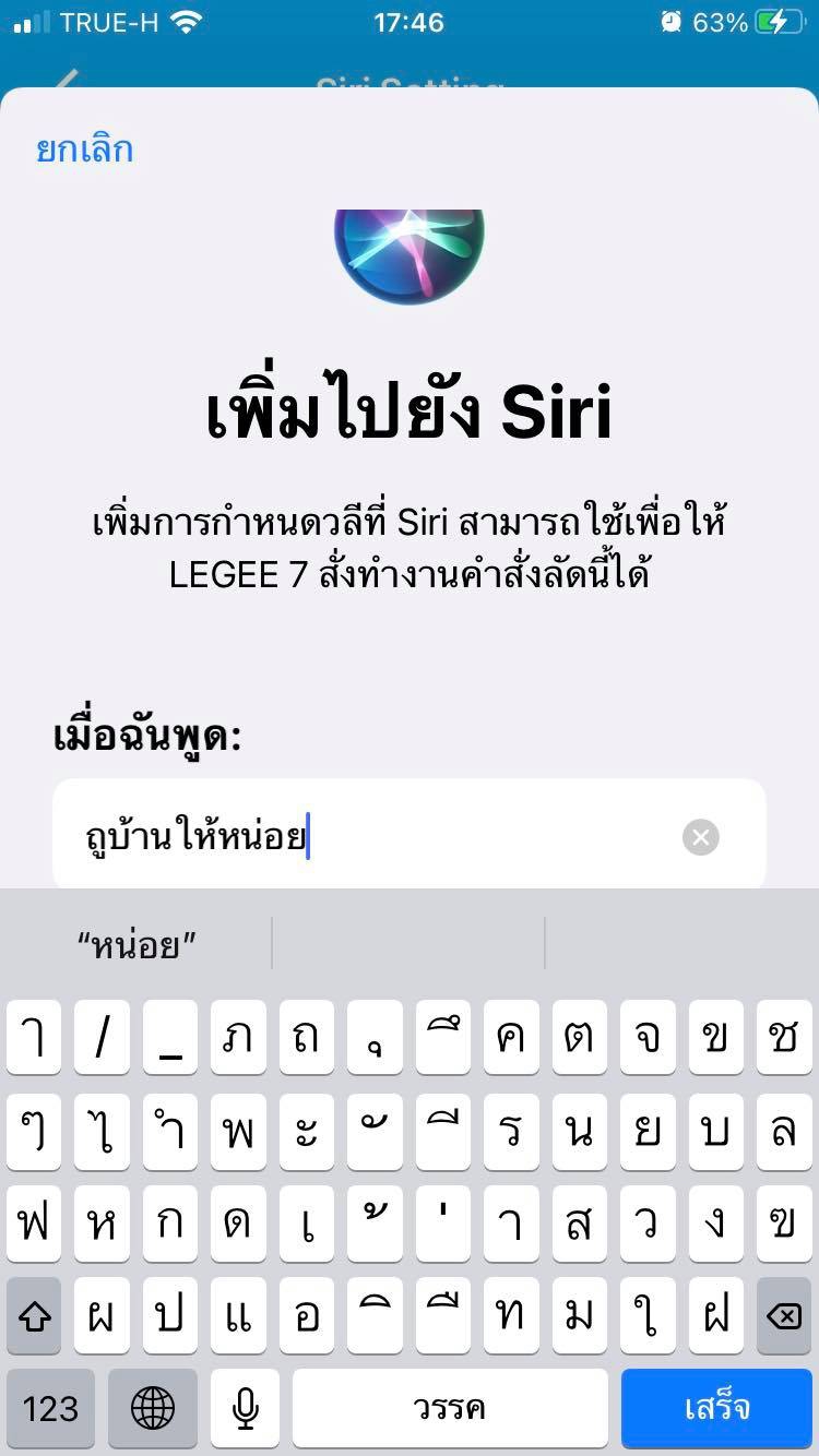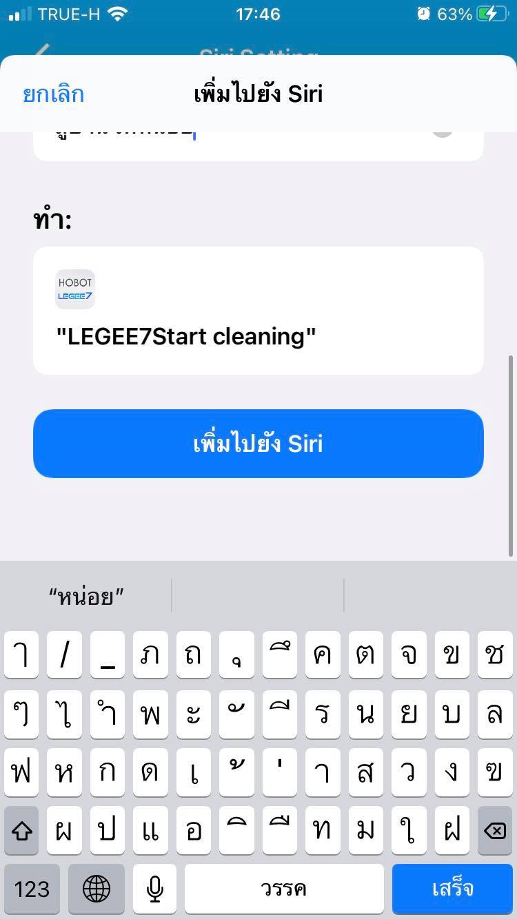 และวิธีการเปลี่ยนคำสั่งเสียงเหล่านี้ให้สามารถรองรับภาษาไทยก็ง่ายนิดเดียว แค่คุณเข้าไปที่สัญลักษณ์ Siri และเลือกคำสั่งที่ต้องการ เช่น Start Cleaning (เริ่มทำงาน) จากนั้นพิมพ์คำสั่งใหม่อย่าง "ถูบ้านให้หน่อย" บนช่อง 'เมื่อฉันพูด' เสร็จแล้วก็เลื่อนลงมากดเพิ่มไปยัง Siri