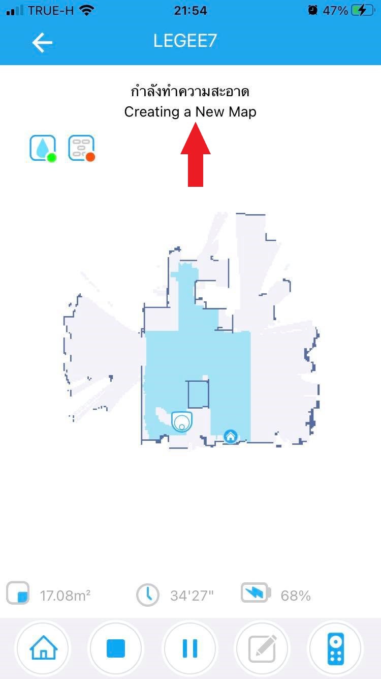 โดยการใช้งานระยะเริ่มต้น ควรปล่อยให้เครื่องเดินงานไปก่อนเพื่อสแกนพื้นที่ และถ้าให้ดีควรสตาร์ทจากจุดชาร์จไฟเพื่อให้ระบบบันทึกสถานีชาร์จไฟบนแผนผัง (ถ้าเริ่มจุดอื่น มันจะไม่รู้ว่าแท่นชาร์จตัวเองอยู่ไหน และมีสิทธิ์วิ่งชน) และเมื่อพอมันสร้างแผนผังออกมาแล้ว คุณสามารถกดหยุดการทำงานและ คลิกที่ Creating a New Map เพื่อทำการเซฟแผนที่ลงไปที่ระบบได้เลยครับ แถมเรายังสามารถดูความเคลื่อนไหวในการทำความสะอาดของมันได้ด้วย