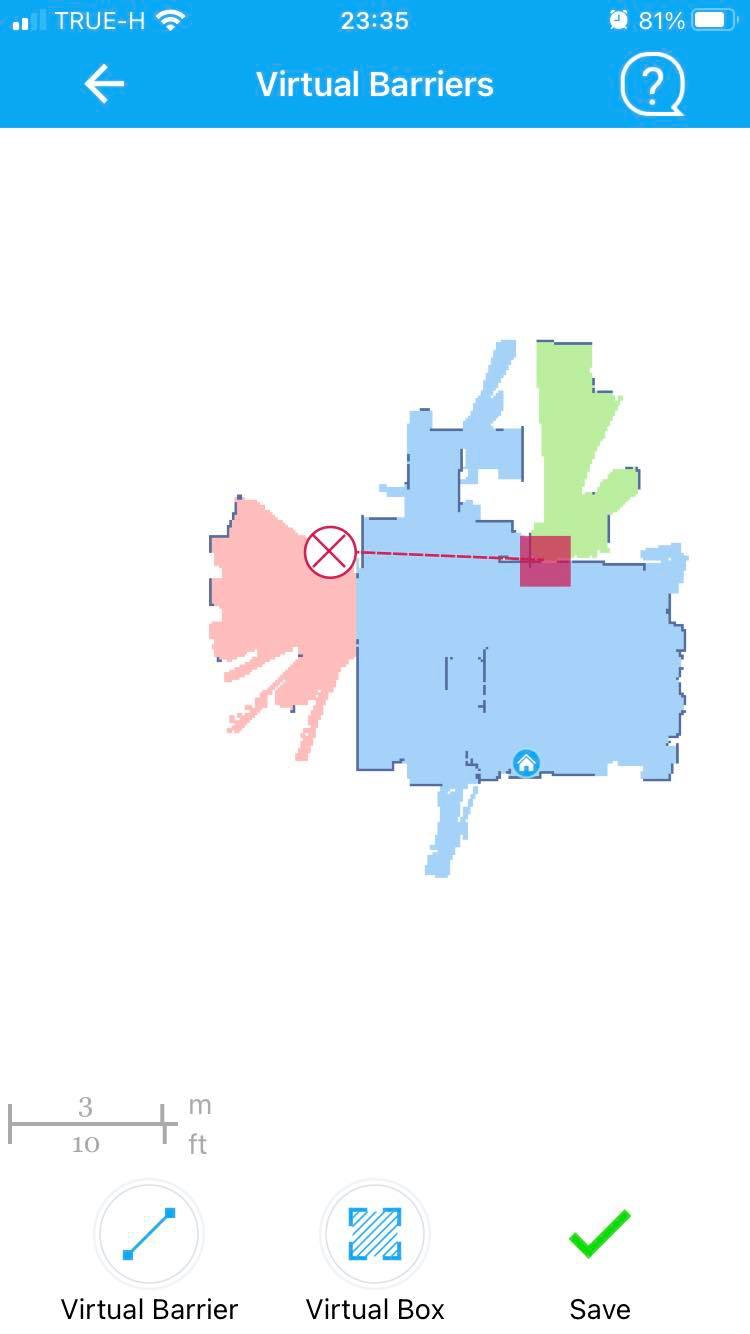 และอีกหนึ่งฟีเจอร์ในฟังก์ชันแผนผังที่น่าสนใจก็คือ Virtual Barriers เราสามารถวาดกรอบ หรือ เส้นแบ่งกั้นบนแผนผังได้ เพื่อป้องกันไม่ให้เครื่องเดินผ่านเข้าไปในพื้นที่ที่เราไม่อยากให้มันเข้าไปทำความสะอาดนั่นเอง และเครื่องก็จะจดจำไม่เดินผ่านเข้าไปส่วนนั้นครับ