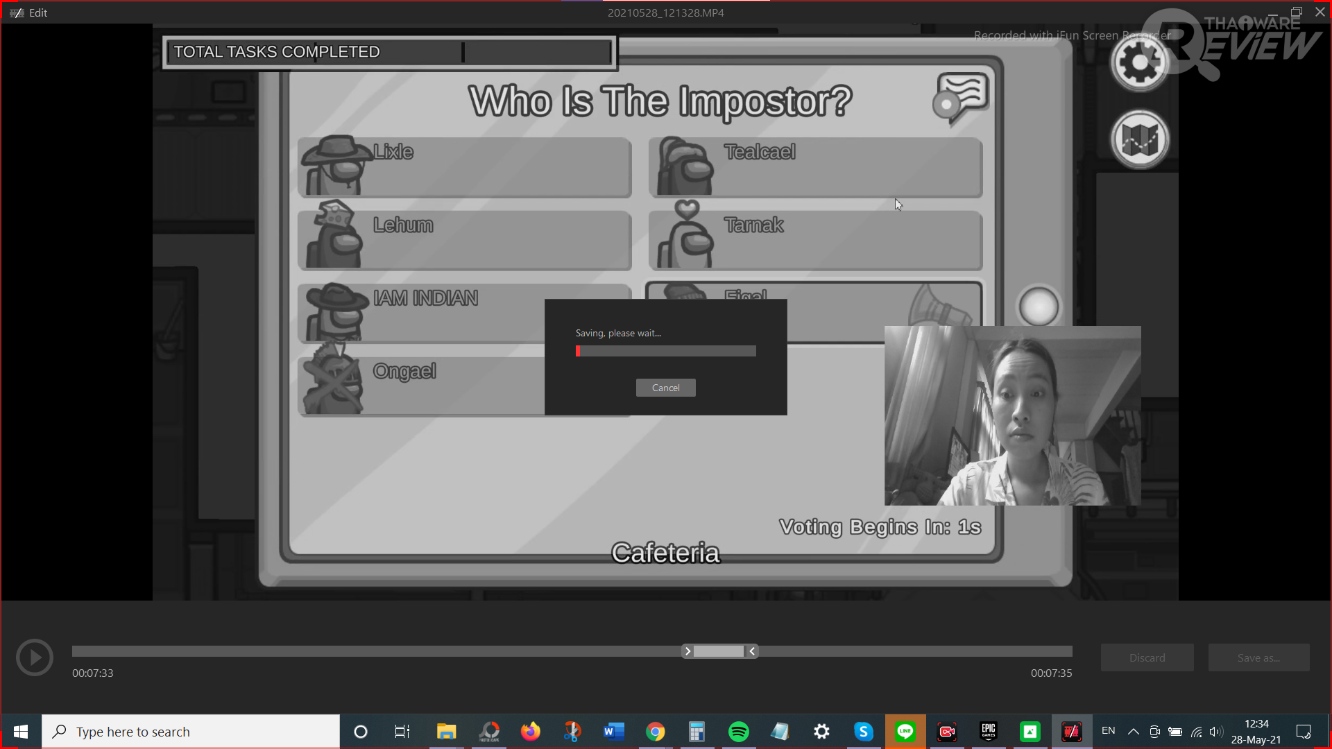 หน้าจอขณะเซฟวิดีโอที่ตัดบางส่วนแล้ว หน้าจอจะกลายเป็นสีขาวดำชั่วคราว