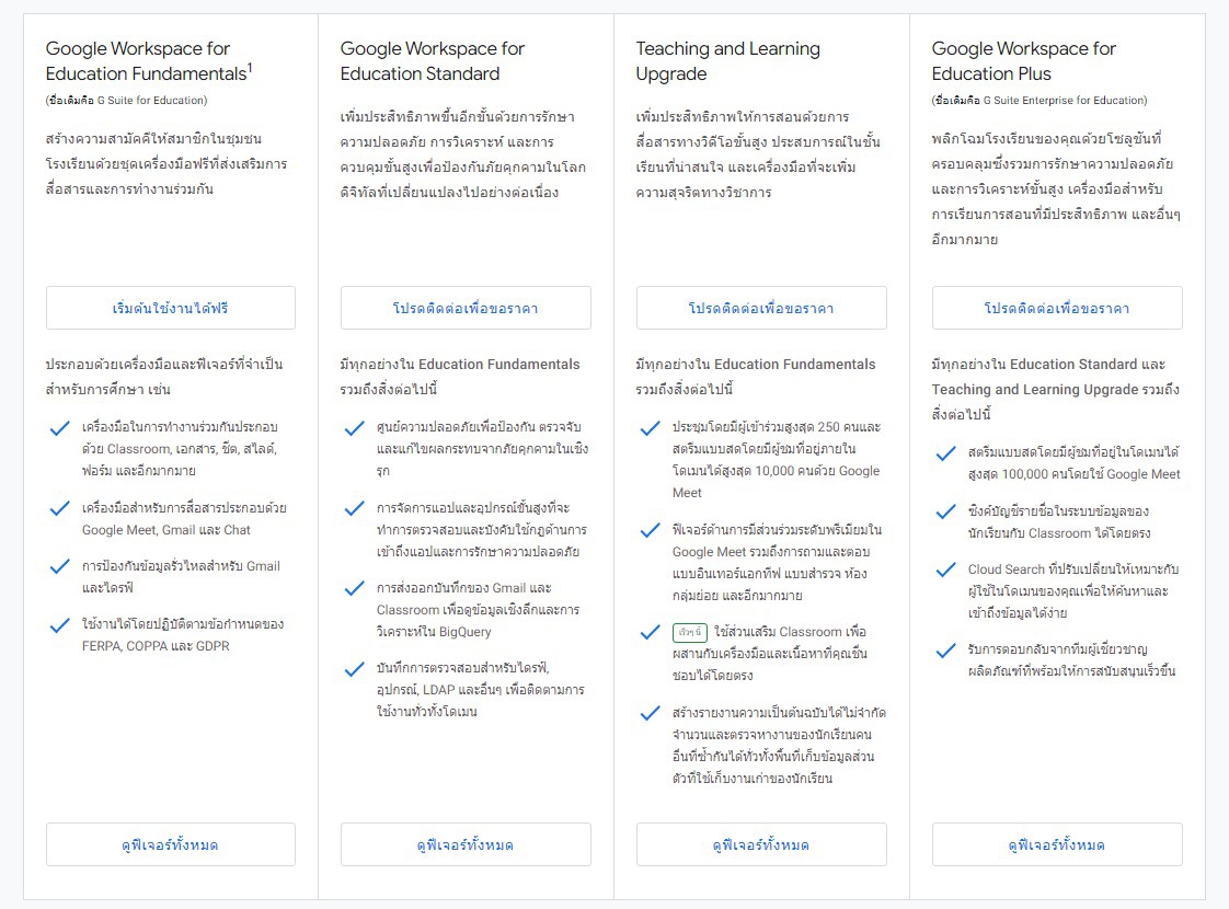 โดยแพ็กเกจของ Google Workspace for Education ก็มี 4 รูปแบบด้วยกัน เพิ่มเติมไปตามขนาดของสถานศึกษา