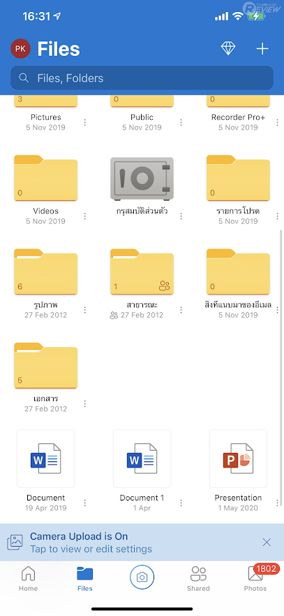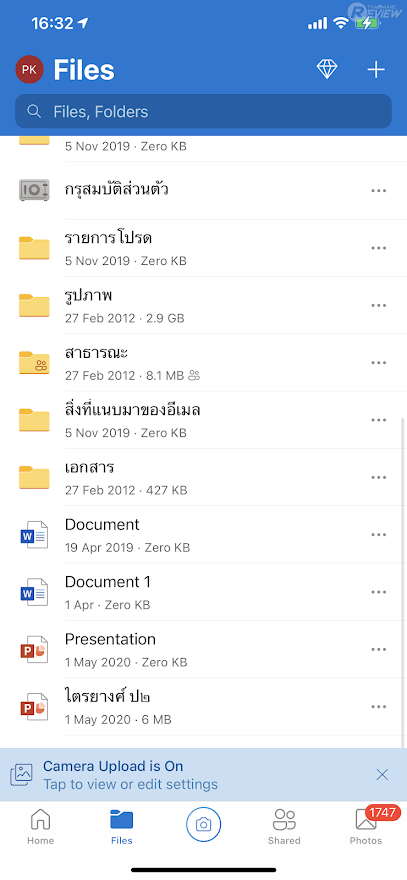 | 3. แอป Microsoft OneDrive | iOS / Android | 5 GB. | 100 GB. | ✔ | ไม่จำกัด | 69 บาท | ✖ | ✔ |