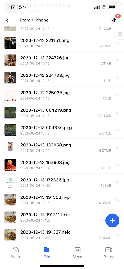 เวลาที่เราไปสำรวจรูปภาพที่แบ็คอัปไว้ จะมีการจัดเรียงด้วยวันเดือนปีแบบละเอียด ทำให้สามารถค้นหาได้ง่าย และสามารถดูพื้นที่คงเหลือในการจัดเก็บที่ "เมนู More" ได้ทันที