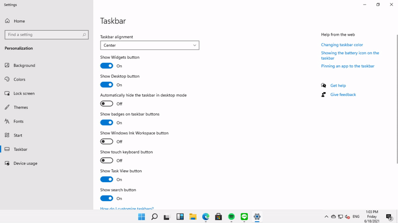 จุดเด่นแรกที่เห็นได้ทันทีของ ระบบปฏิบัติการ Windows 11 คือ หน้าจอ Desktop ที่เปลี่ยนไป ไม่ว่าจะเป็น "เมนู Start", ไอคอนของโปรแกรมที่เราปักหมุดเอาไว้ และหน้าต่างของโปรแกรมที่ถูกย่อหน้าต่างเอาไว้ จะถูกย้ายมาอยู่ตรงกลางด้านล่างของหน้าจอแล้ว