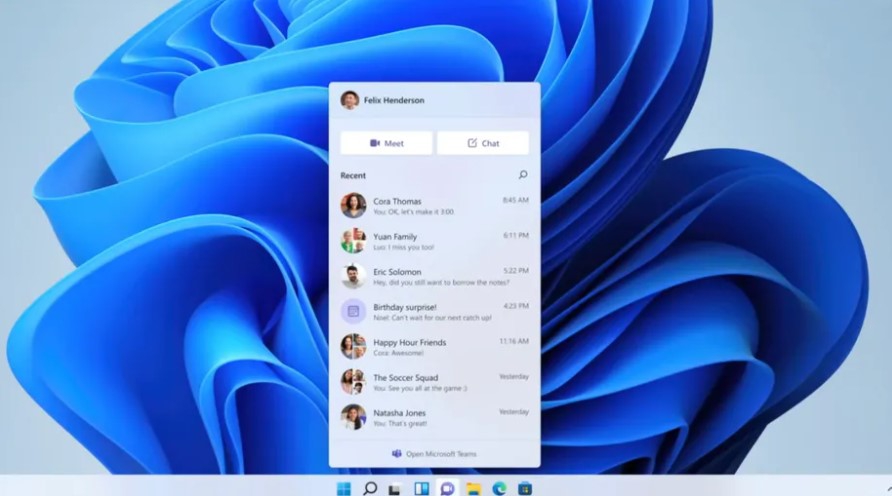 Microsoft Teams แพลตฟอร์มประชุมออนไลน์ จะถูกติดตั้งฝังมาในแถบงาน (Taskbar) บนระบบปฏิบัติการ Windows 11 โดยอัตโนมัติ เพื่อเพิ่มความสะดวกให้กับผู้ใช้งานในการติดต่อสื่อสาร ชัดเจนว่า Skype กำลังจะถูกลอยแพ นอกจากนี้ยังมีการเพิ่ม "ปุ่ม Mute" ไมค์อเนกประสงค์ บน System Tray หรือตรง Icon ขวาล่างของ Taskbar ช่วยให้คุณปิดไมค์เวลาใช้โปรแกรมสื่อสาร ต่าง ๆ ได้ง่ายขึ้น