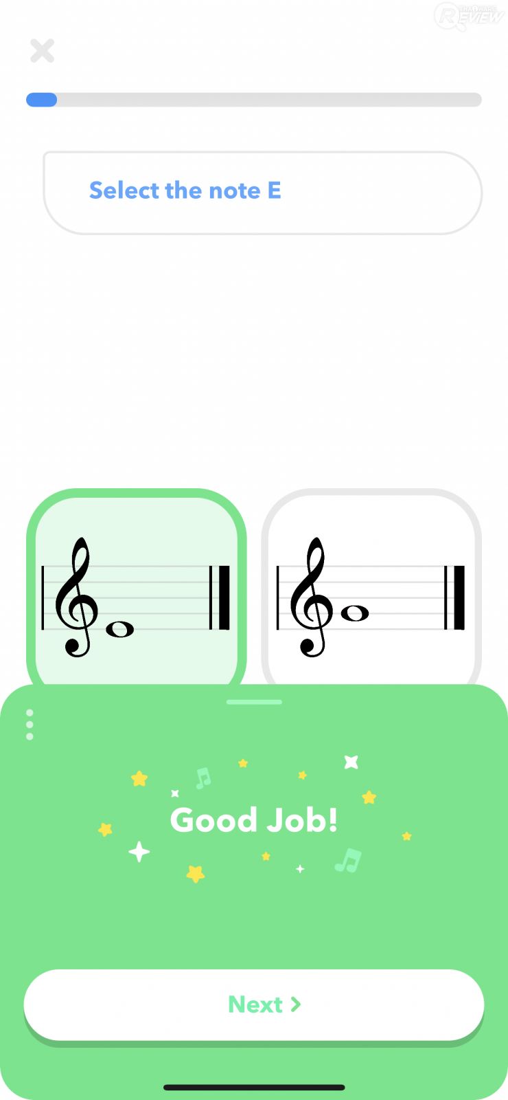 ภายในแอปนี้ จะเริ่มตั้งแต่การสอนโน้ตขั้นพื้นฐาน โดยใช้ตัวอักษรภาษาอังกฤษแทนเสียง เช่น C = โด, D = เร, E = มี เป็นต้น และจะได้ลงมือวาดตัวโน้ตเองด้วย เหมาะสำหรับคนไม่ชอบการท่องจำ เพราะจะได้วาดตัวโน้ตเองเลยยังไงล่ะ ! อีกทั้งยังมีแบบฝึกหัดสนุก ๆ เช่น การจับคู่เสียงและตัวโน้ต การฟังทำนองแล้วทายว่าโน้ตอะไรที่เพิ่งถูกเล่นไป เป็นต้น