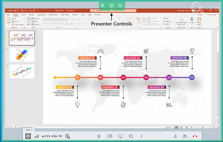 ส่วนหน้าจอฝั่งสมาชิกที่ดูผู้อื่นแชร์หน้าจอ จะเห็นว่ามีการแบ่งสัดส่วนหน้าจอชัดเจน ย้ายส่วนของสมาชิกห้องประชุมไปไว้ทางฝั่งขวา ที่เหลือก็จะเป็นพื้นที่หน้าจอจากสมาชิกคนอื่น ๆ หากอีกฝ่ายทำการแชร์หน้าจอ จากมือถือ ก็สามารถที่จะแสดงผลได้ทั้งหน้าจอแนวตั้ง แนวนอน หรือจะหมุนหน้าจอไปมาก็ได้ อีกด้วยเช่นกัน
