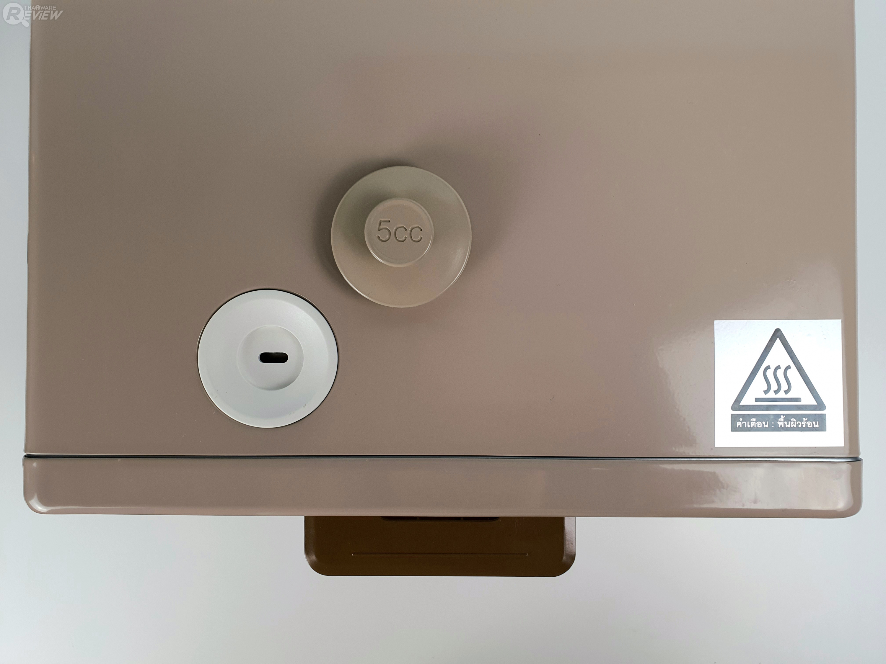 ด้านบนของเตา จะมีจุดที่เป็นปุ่มนูนขึ้นมา เป็นจุดที่มีไว้สำหรับเติมน้ำลงไป เพื่อใช้งานไอน้ำในการประกอบอาหาร โดยการใส่น้ำลงไปนั้น ผู้เขียนแนะนำให้ ดึงจุกน้ำออกมา แล้วนำถ้วยจุกน้ำไปตวงน้ำมาใส่ โดยจะสามารถใส่ได้ครั้งละไม่เกิน 2 ถ้วยเท่านั้น เพื่อป้องกันไม่ให้น้ำล้นออกมาเวลาปิดจุกคืนลงไปตามเดิม