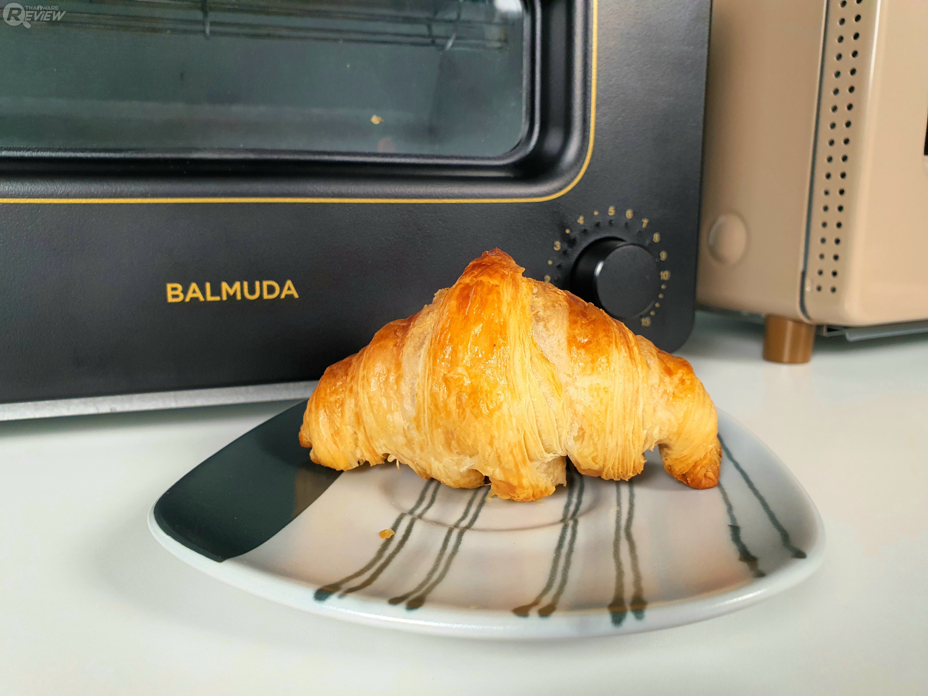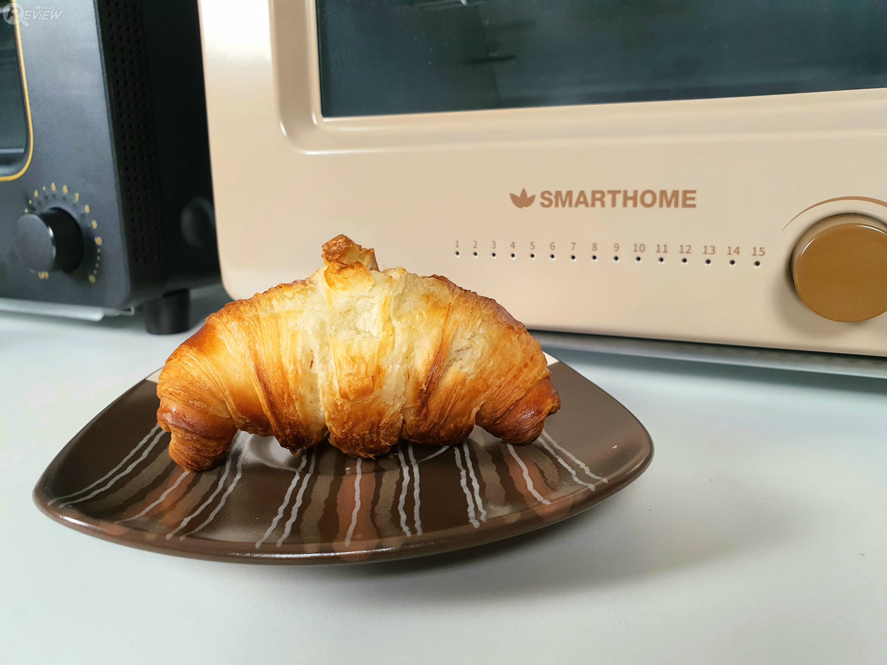 ในส่วนของการใช้งาน เราได้ลองอบครัวซองต์ด้วยโหมดสำเร็จรูป (ซึ่งเป็นครัวซองต์สดจากช่องฟรีซในตู้เย็น) ผลปรากฏว่า ตัวเตาอบ SMARTHOME Beyond รุ่น SM-OV1300 สามารถทำความร้อนได้ดีกว่า ใช้เวลา 6 นาที ผิวนอกครัวซองต์ก็เปลี่ยนเป็นสีน้ำตาลกรอบ ในส่วนของเตาอบ BALMUDA เหมือนจะทำความร้อนได้น้อยกว่าจึงใช้เวลาในการอบครัวซองต์มากกว่าถึงเท่าตัว