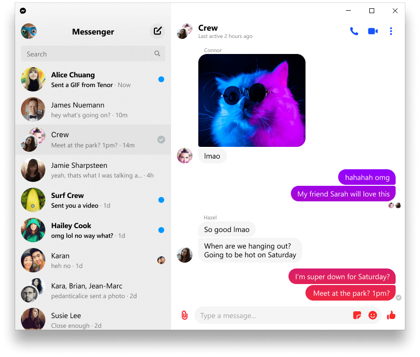 Facebook Messenger นี่หลาย ๆ คนก็น่าจะใช้บ่อยพอ ๆ กับ LINE เลยทีเดียว ถ้าไม่อยากเปิดหน้า Feed Facebook เพื่อแชทในเวลางาน ก็ดาวน์โหลดโปรแกรม Facebook Messenger มาไว้ในคอมซะเลย ใช้งานได้เหมือนกันทุกประการ จะทำการพูดคุยผ่านวิดีโอ (Video Call) หรือโทรด้วยเสียง (Voice Call) ก็ทำได้เหมือนกัน แถมไฟล์ รูปภาพที่ส่งผ่านโปรแกรมนี้ไม่มีวันหมดอายุอีกด้วยนะ