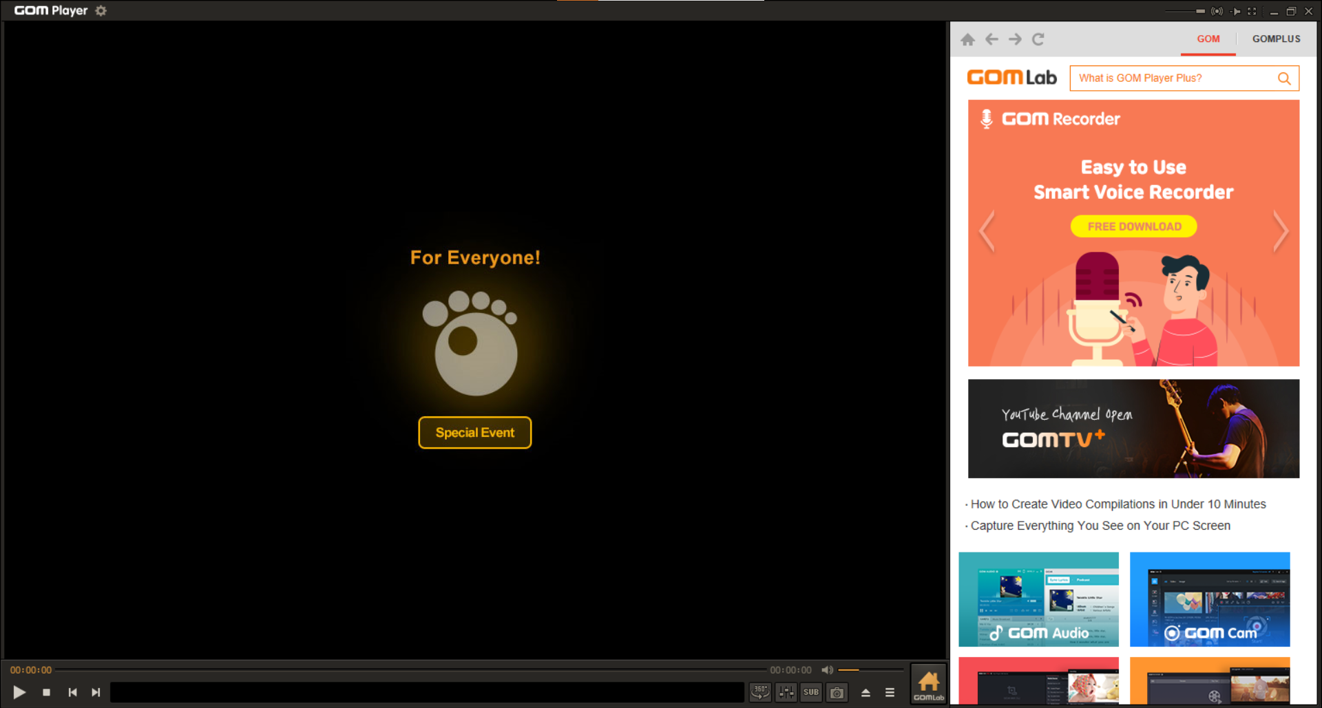 ส่วนโปรแกรมที่ตีคู่กันมาอย่าง GOM Player ก็ได้รับความนิยมไม่แพ้กัน นอกจากฟีเจอร์การรับชมวิดีโอแล้ว ยังสามารถแสดงผลวิดีโอ 360 องศาได้ แถมยังมีแนะนำโปรแกรมอื่น ๆ ในเครือ GOM ให้ได้ลองดาวน์โหลดอีกต่างหาก หรือจะไปใช้โปรแกรมเวอร์ชันอัปเกรดอย่าง GOM PLUS ที่ปรับหน้าจอของผู้ใช้งาน (User Interface UI) ใหม่ แถมไม่มีโฆษณามารบกวนก็ดูเข้าทีนะ