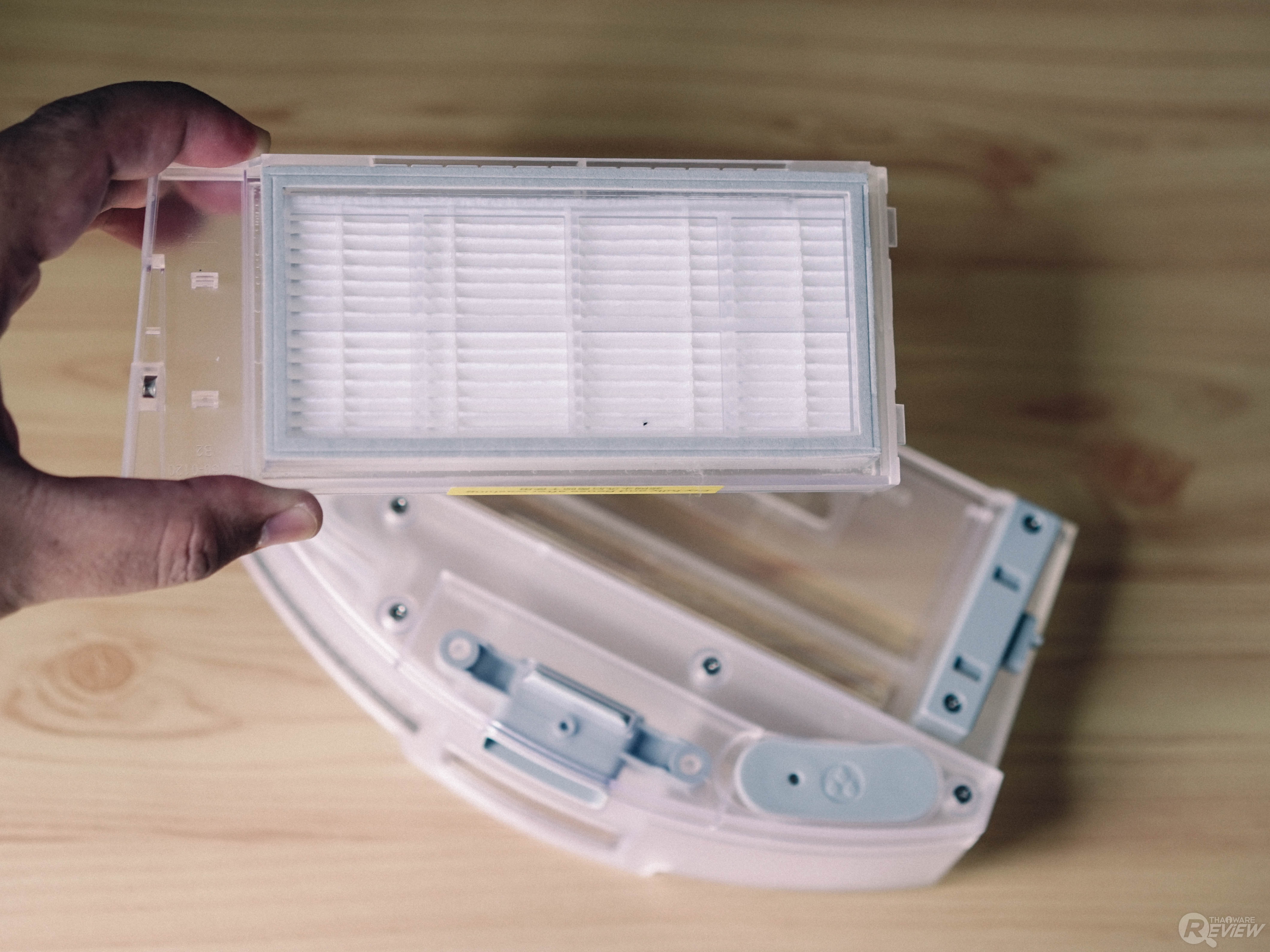 ถังเก็บขยะเจ๋งดี สามารถถอดเปลี่ยนฟิลเตอร์ดักฝุ่นได้ด้วย เมื่อเราใช้ไปนาน ๆ ผ่านการทำความสะอาดครั้งแล้วครั้งเล่า จนใยกรองเริ่มเสื่อมสภาพ ก็ไม่จำเป็นต้องซื้อถังเก็บขยะตัวใหม่มาเปลี่ยน ซื้อแค่อะไหล่ฟิลเตอร์ตัวใหม่มาเปลี่ยนก็พอ (ในกล่องจะมีฟิลเตอร์ติดมาในตัวหุ่นยนต์ให้แล้ว 1 อัน และมีสำรองให้อีก 1 อัน)