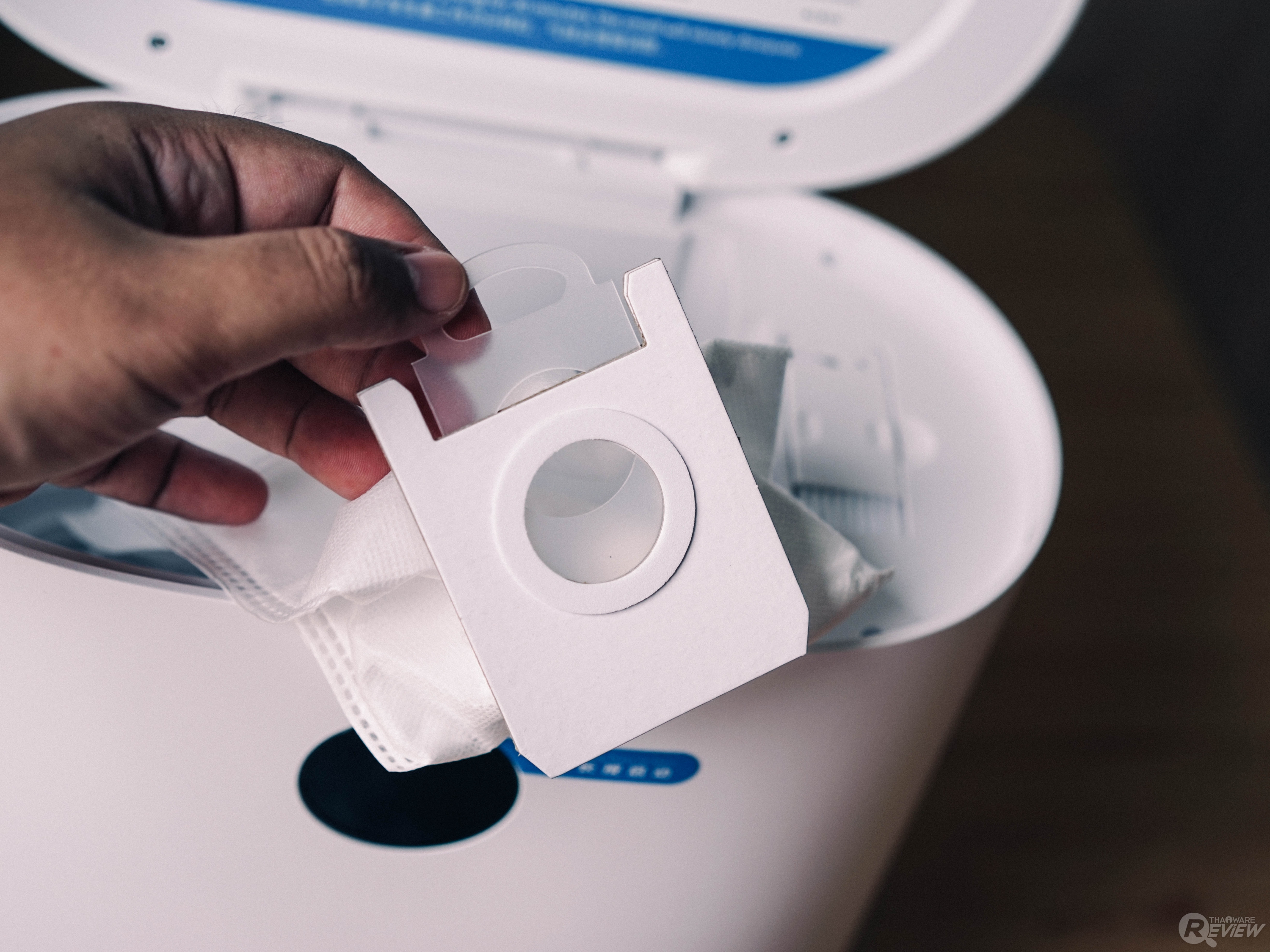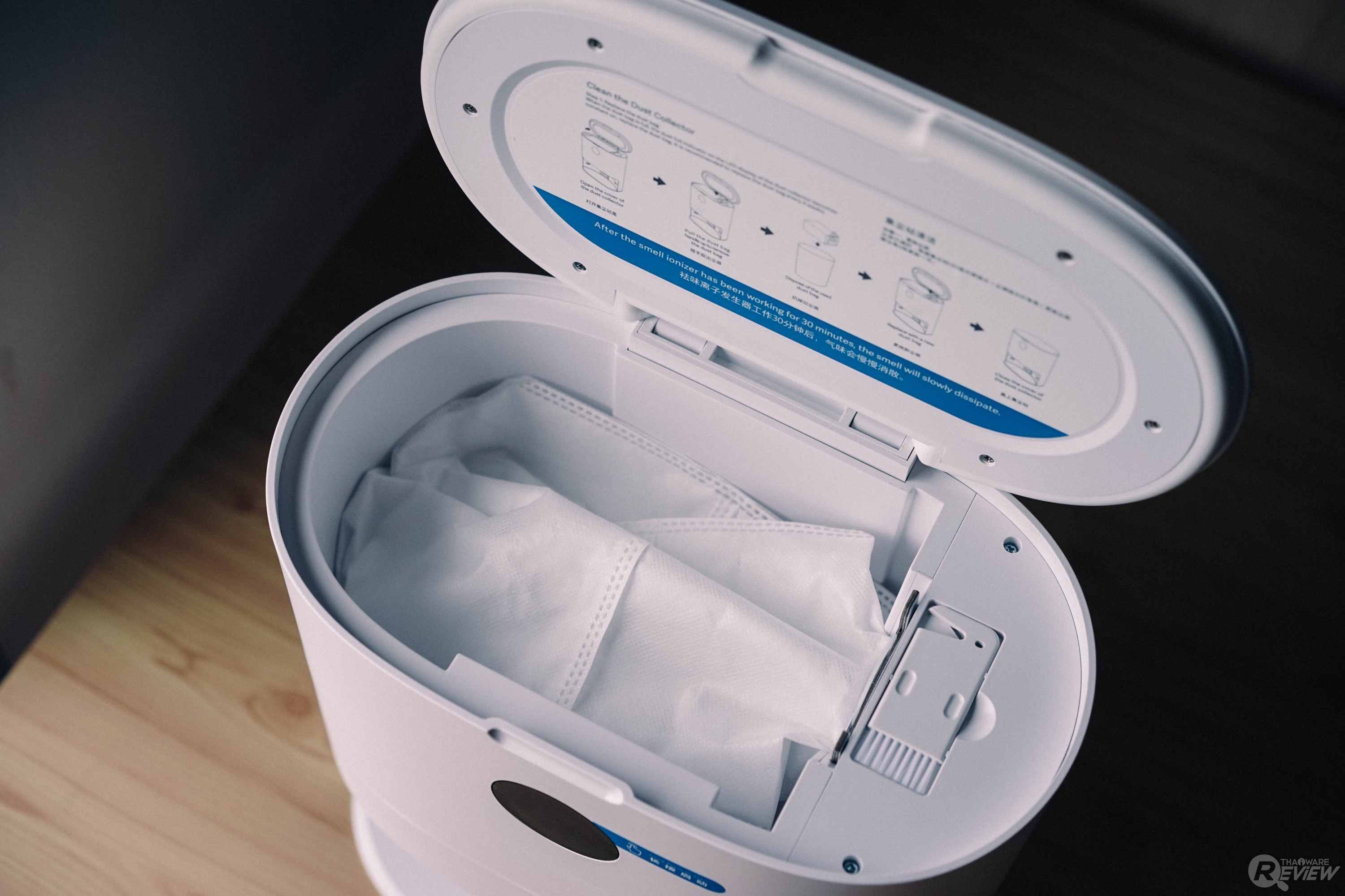 เจ้าช่องเก็บถุงขยะภายในแท่นชาร์จไม่ได้มีดี แค่เอาไว้ดูดขยะออกจากถังโดยอัตโนมัติเท่านั้นนะ อย่างที่เราบอกไปเมื่อสักครู่ว่า เจ้าถุง 3 ลิตร เนี่ย มันใช้ได้นานนะ กว่าขยะจะเต็มถุง นั่นอาจทำให้ผู้ใช้เกิดความกังวลได้ว่า ขยะที่เก็บไว้นาน ๆ มันจะอับ ส่งกลิ่นเหม็น เป็นแหล่งเพาะพันธุ์เชื้อโรคหรือเปล่า