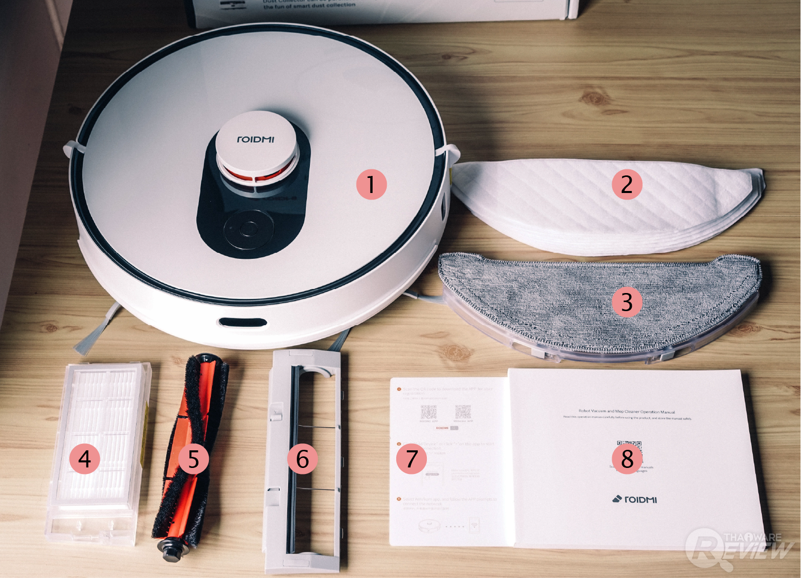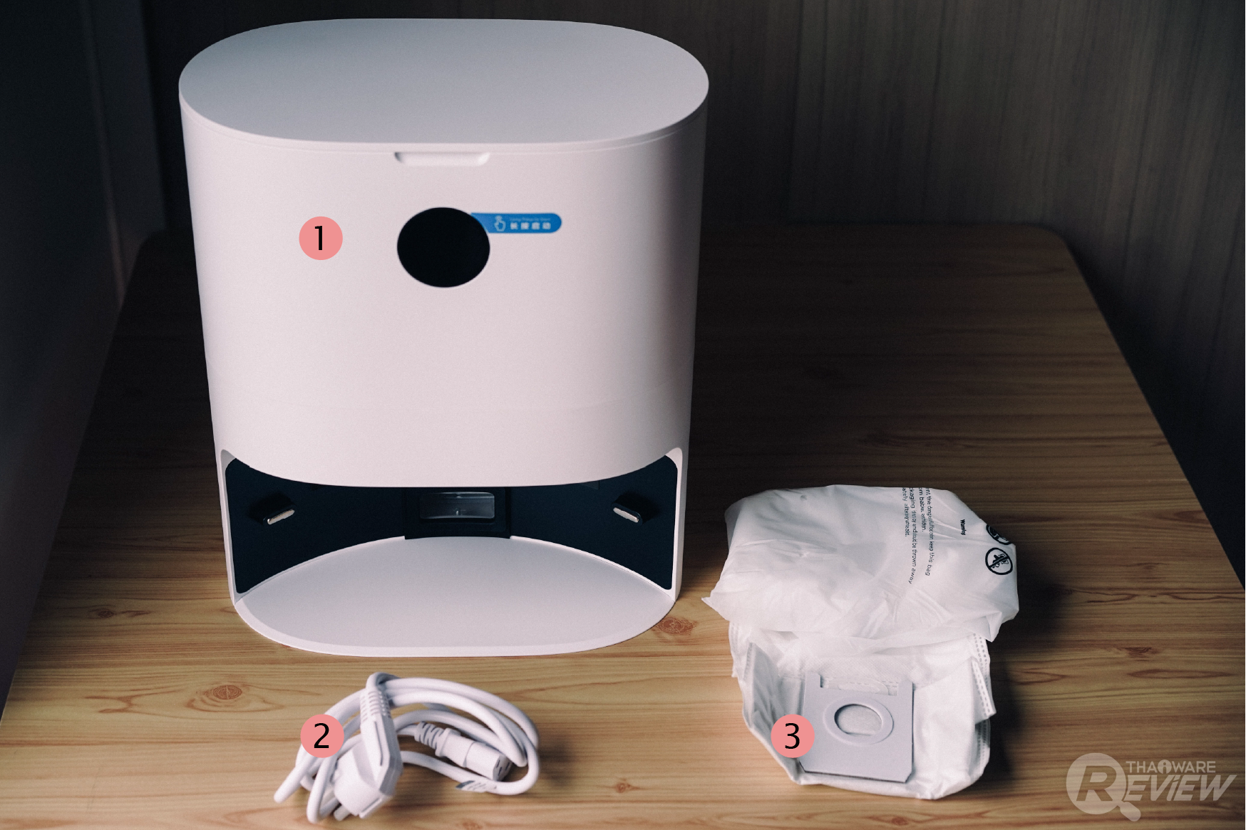 ในหัวข้อนี้จะขอแยกออกเป็น 2 ส่วนนะครับ คือ หุ่นยนต์ดูดฝุ่น ROIDMI EVE Plus และถังเก็บขยะ + แท่นชาร์จ