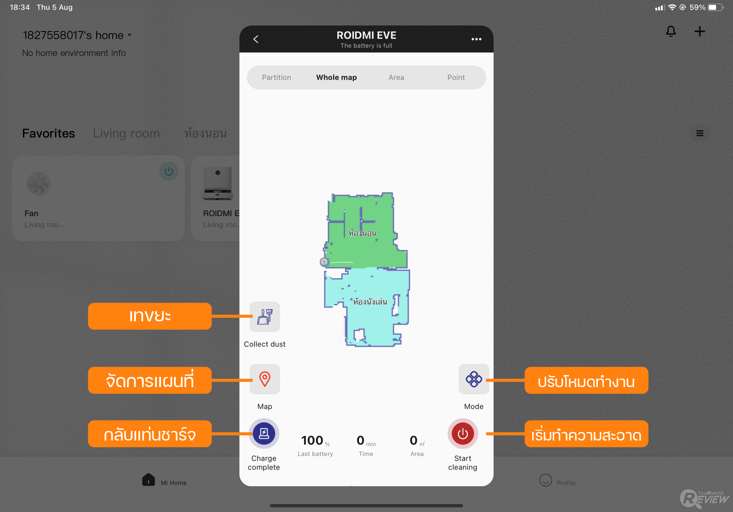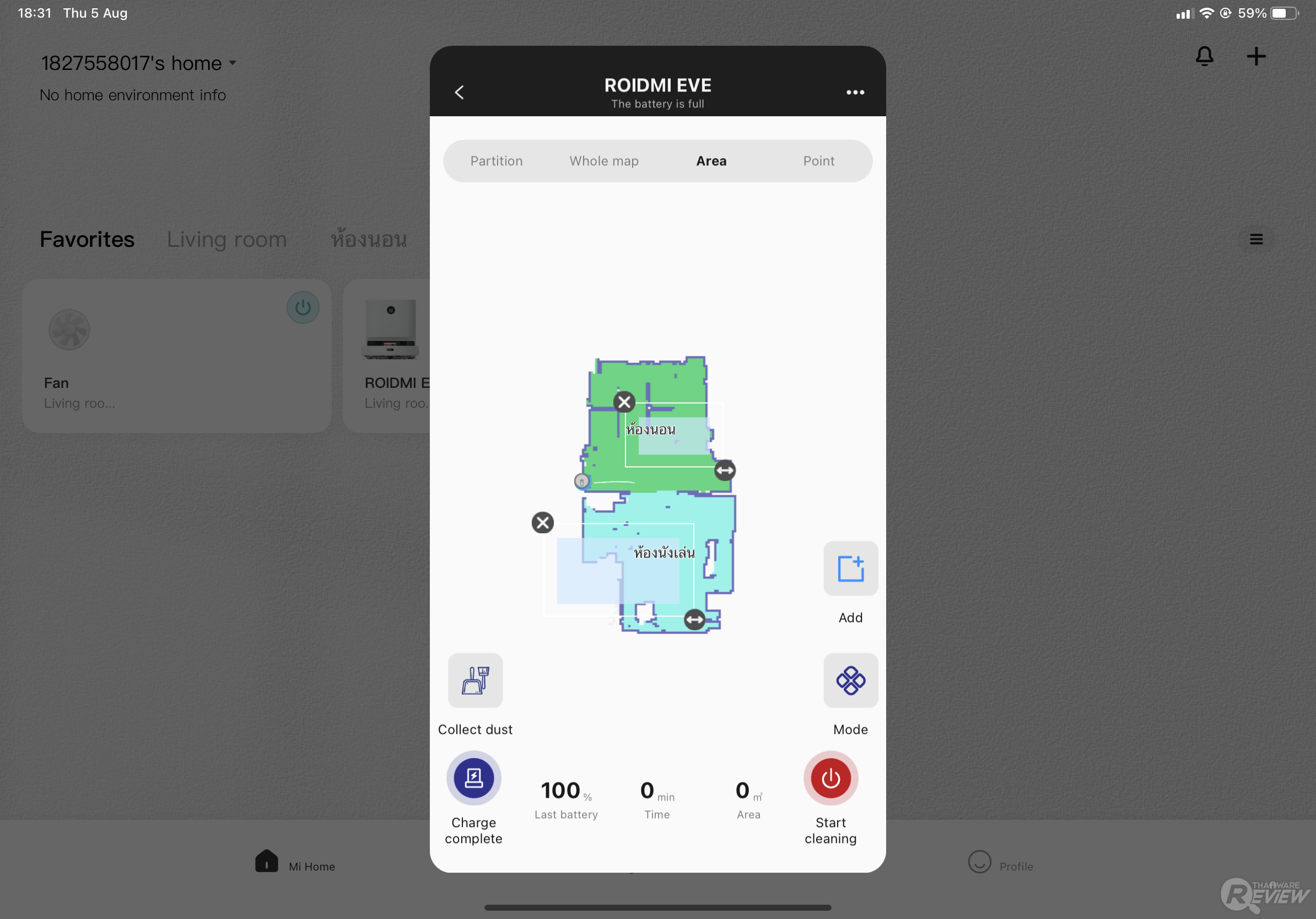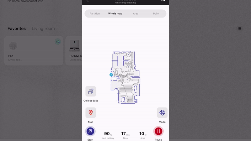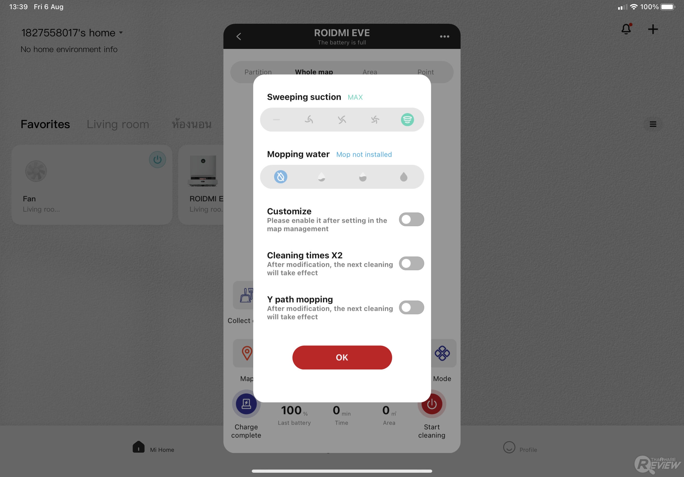 สิ่งที่เราชอบ คือ เมื่อเข้ามาในแผนที่แล้ว เราสามารถตั้งค่าโหมดที่หุ่นยนต์ดูดฝุ่นจะทำงานในแต่ละจุดไว้ล่วงหน้าได้ด้วย ตัวอย่างเช่น ห้องนอนผมรู้สึกว่าไม่ค่อยได้ใช้งาน ห้องจึงไม่สกปรกมาก เลยตั้งค่าให้ดูดฝุ่นที่ความแรงระดับ 2 และไม่จำเป็นต้องถูพื้น ส่วนห้องนั่งเล่นที่ส่วนใหญ่จะใช้ชีวิตทำกิจกรรมต่าง ๆ ในห้องนั้นเกือบทั้งวัน ก็ปรับให้ดูดที่ความแรงระดับ 3 และให้ถูพื้นด้วย เป็นต้น