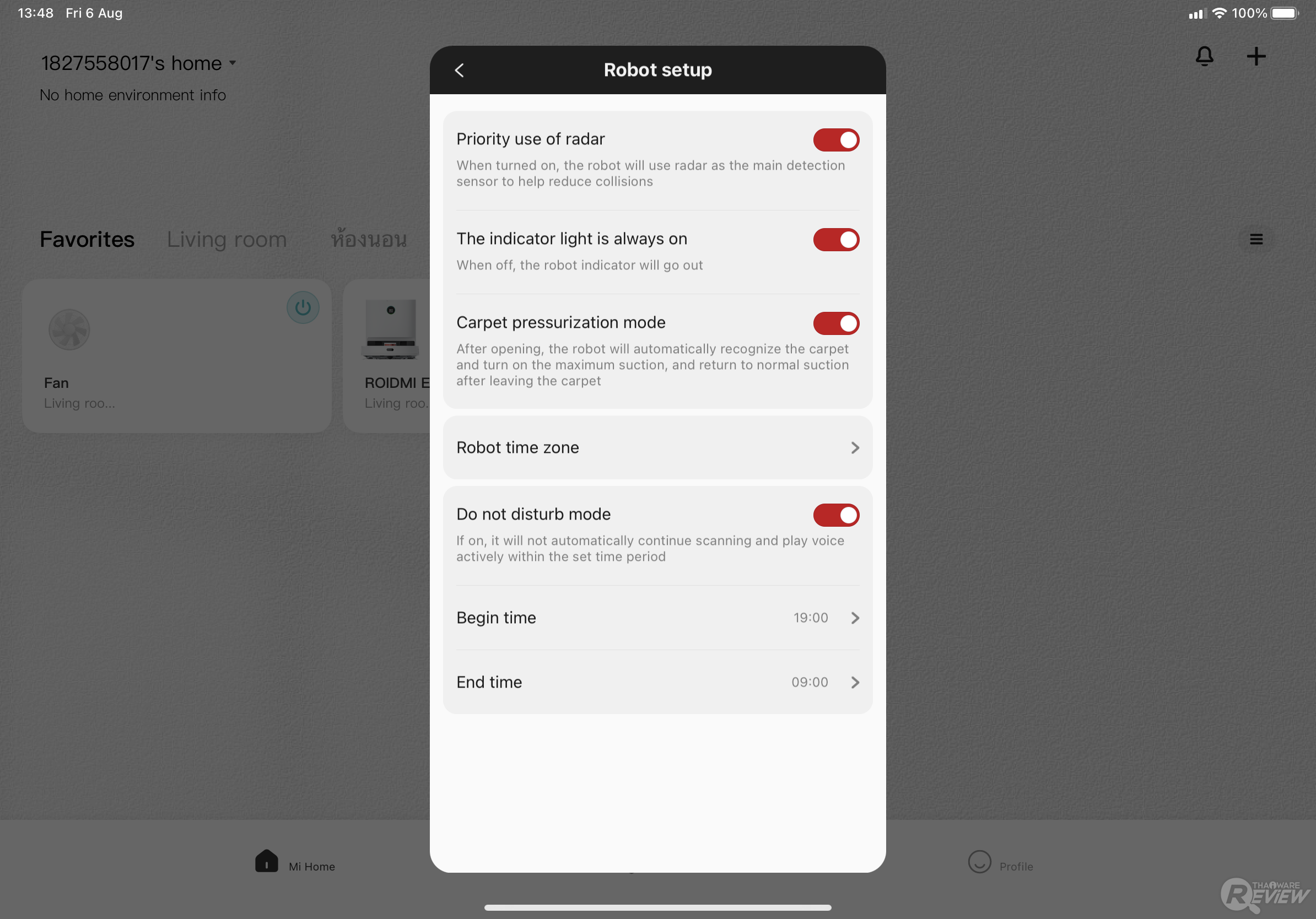 สุดท้าย คือ โหมดห้ามรบกวน (Do not disturb mode) ที่ปัจจุบันมีอยู่ในสมาร์ทโฟน โดยเมื่อเข้าสู่โหมดนี้ เสียงการแจ้งเตือนจะหายไปเพื่อลดการรบกวน ซึ่งใน หุ่นยนต์ดูดฝุ่น ROIDMI EVE Plus เขาก็ใส่มาให้ด้วย โดยเราสามารถตั้งเวลาได้ว่าจะให้เข้าสู่โหมดห้ามรบกวนอัตโนมัติ ในช่วงเวลาที่ถูกกำหนดไว้