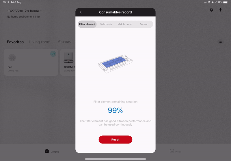 ในตัวหุ่นยนต์มันก็จะมีหลายชิ้นส่วนที่เมื่อเราใช้ไปนาน ๆ มันก็จะเสื่อมสภาพ ซึ่งในแอปพลิเคชัน ก็จะมีบอกอัตราการเสื่อมสภาพเอาไว้ให้เราทราบด้วย ว่าถึงเวลาที่ต้องทำความสะอาดเซนเซอร์, ทำความสะอาดหัวแปรง หรือได้เวลาเปลี่ยนอะไหล่แล้วนะ