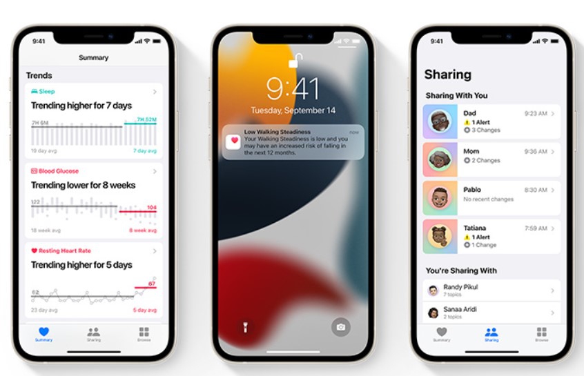 แอปสุขภาพ หรือ Health อัปเดตให้สามารถแชร์ข้อมูลกับคนที่คุณรักได้ เพื่อช่วยประเมินความเสี่ยง และ แนวโน้มการเปลี่ยนแปลงด้านสุขภาพของผู้ใช้