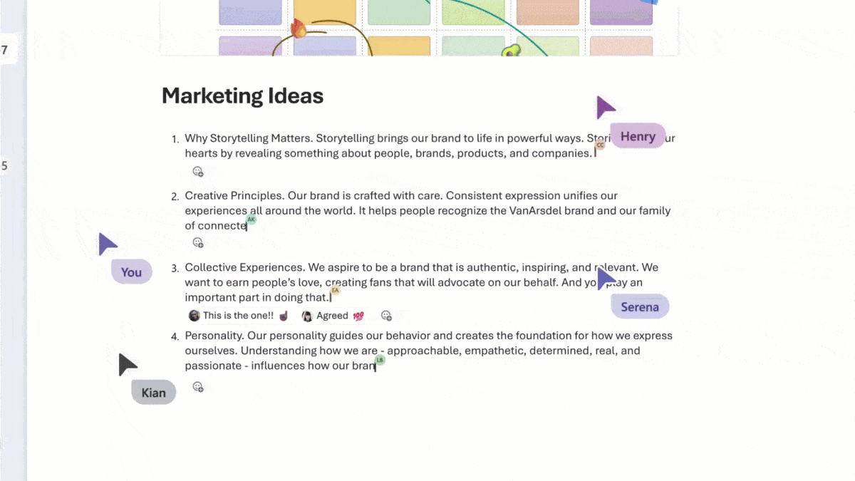 ฟีเจอร์ที่จะช่วยให้ผู้ใช้สามารถมองเห็นการทำงานของเพื่อนร่วมงานคนอื่น ๆ ได้แบบเรียลไทม์ โดยมันจะแสดงไอคอนของเพื่อนร่วมทีมของเราว่าในขณะนี้ใครกำลังทำอะไรในส่วนไหนอยู่ (น่าจะช่วยแก้ปัญหาทำงานชนกันได้ดีเลยล่ะ) อีกทั้งยังสามารถกด React งานของเพื่อน ๆ ในทีมได้อีกด้วย ซึ่งหากพบปัญหาในการทำงานก็น่าจะแจ้งให้ทราบและเรียกประชุมเพื่อหาทางแก้ไขปัญหาร่วมกันได้อย่างรวดเร็ว