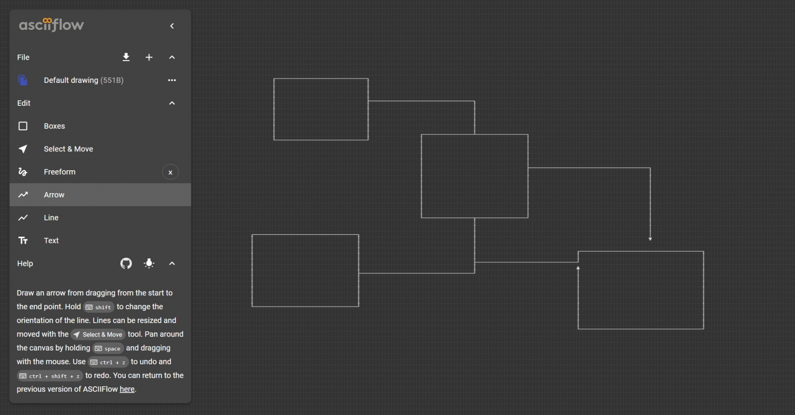 เข้าใช้งานโปรแกรม ASCIIFlow (เวอร์ชันเก่า หรือ Legacy Infinity) ผ่านเว็บเบราว์เซอร์