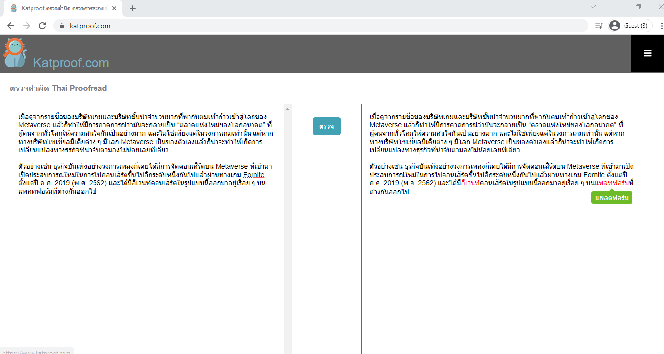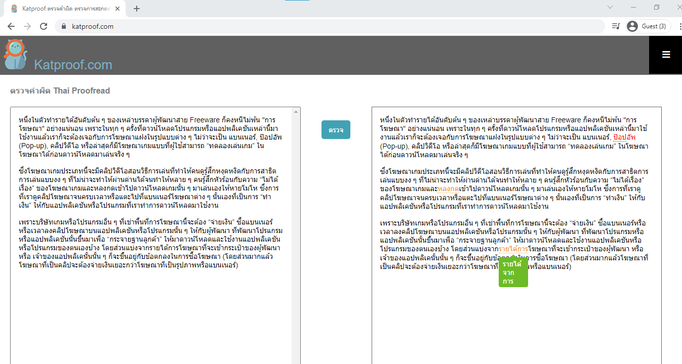 จะดีกว่าไหมถ้าเรามีตัวช่วยในการ "ค้นหาคำผิด" หรือจุดที่ผิดพลาดในงานเอกสารของเราก่อนที่จะสายเกินแก้ หรือรู้ตัวว่ามีคำผิดเมื่ออยู่ในมืออาจารย์ (หรือเพื่อนร่วมงาน / ลูกค้า) และไม่สามารถแก้ไขอะไรได้ทันแล้ว ? มารู้จักกับ Katproof เว็บไซต์ตรวจคำผิดฝีมือคนไทยที่จะมาช่วยแก้ปัญหาน่าปวดหัวนี้กันดีกว่า !