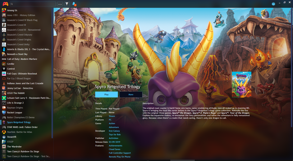 อย่างไรก็ตาม ด้วยความที่มีหน้าตาการเรียงเกมค่อนข้างเป็นระเบียบ เลยทำให้คุณสามารถใช้มันเป็น Game Launcher ได้ด้วย เพราะสามารถเรียกเปิดเกมขึ้นมาเล่นจากโปรแกรมนี้ได้เลยโดยตรง แถมยังสามารถปรับแต่งการแสดงผลแยกในแต่ละเกมได้เลยจากที่นี่