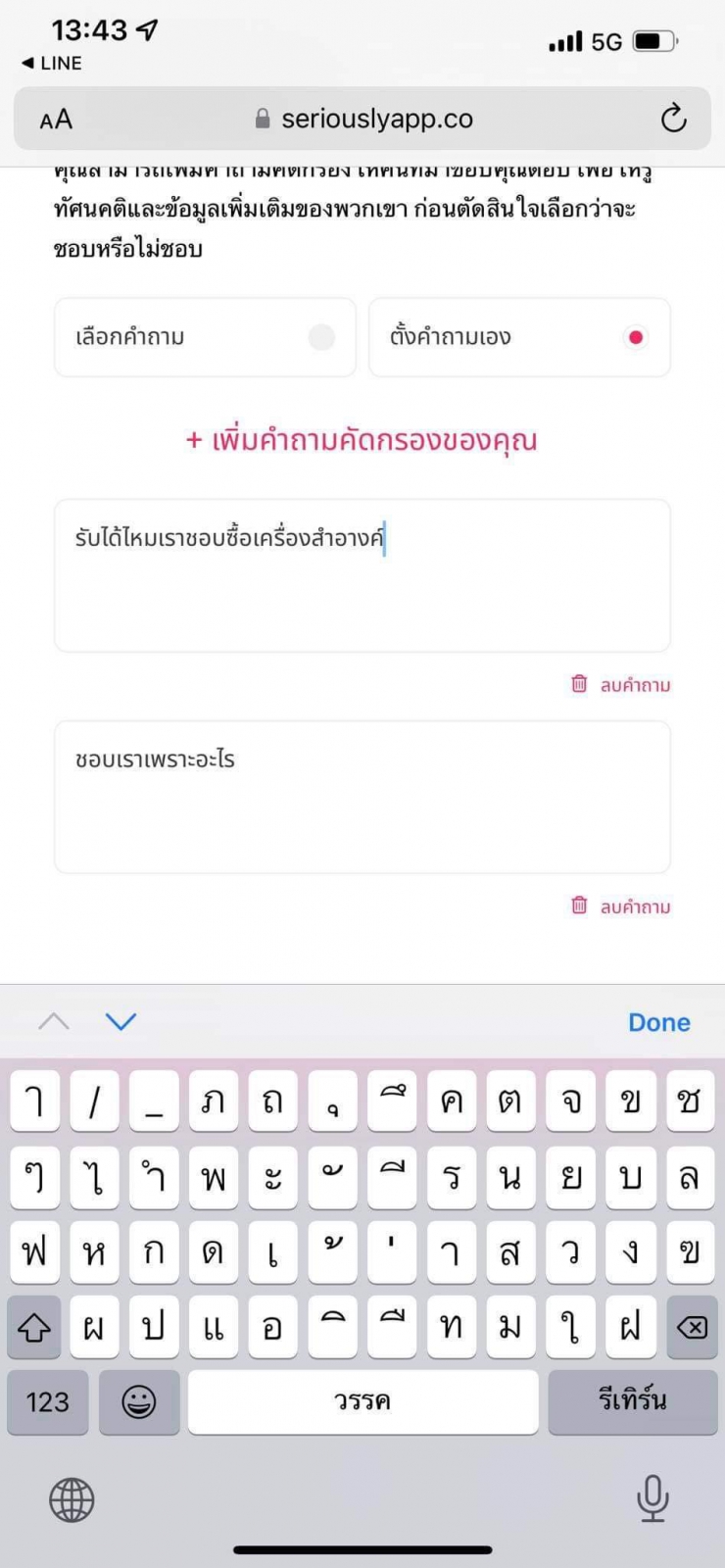 ระหว่างนั้น เราสามารถใช้เวลานี้เพื่อกรอกข้อมูลส่วนตัว โดยเฉพาะการตั้งคำถามคัดกรองคนที่สามารถเลือกคำถามจากระบบ หรือ สร้างคำถามที่เราอยากจะรู้เองได้