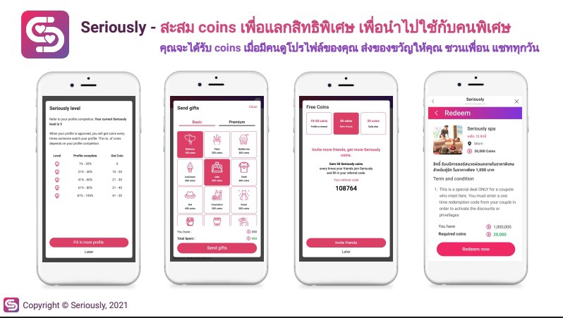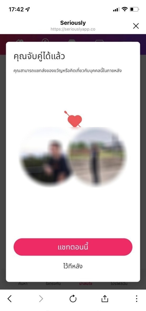 แต่ แอป Seriously ไม่ใช่อย่างนั้น เพราะระบบจะให้ความสำคัญกับเรื่องการดูทัศนคติของฝ่ายตรงข้าม รวมถึงสเปกที่ตรงกันก่อนเสมอ