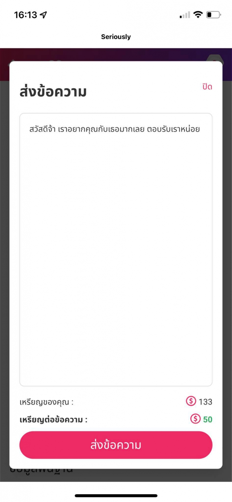 นอกจากนี้ หากเราอยากรู้จักฝ่ายตรงข้ามจริง ๆ และเขาไม่ยอมชอบเรากลับ ก็สามารถใช้ Coin ในการจ่ายเพื่อส่งข้อความได้เลยทันที อันนี้ก็เหมือนสายตื๊อหน่อย ๆ