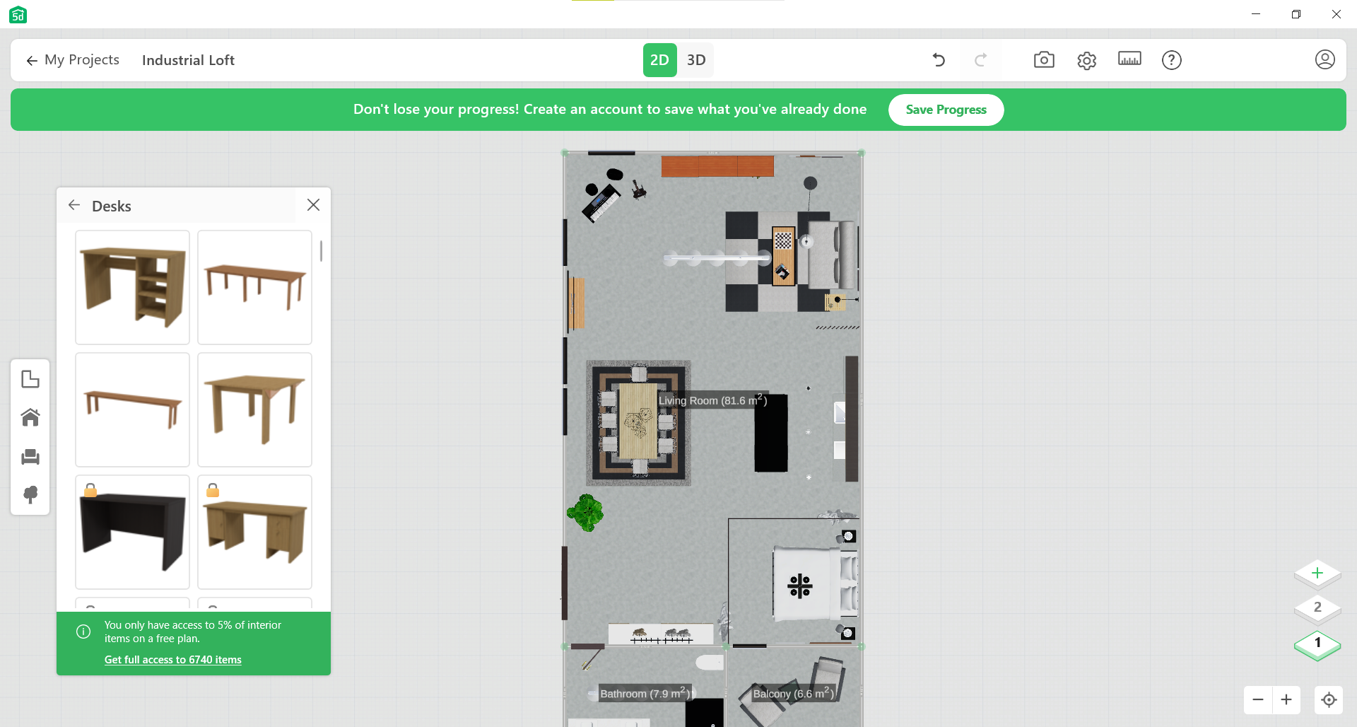 โปรแกรมออกแบบบ้าน Planner 5D ตกแต่งบ้านที่การันตีความสมจริง คมชัดระดับ HD ของภาพ 3 มิติ และนี่ก็เป็นอีกโปรแกรมที่ใช้งานง่าย แบ่งตามลำดับชั้นของบ้านได้ มีตัวเลือกเฟอร์นิเจอร์ ต้นไม้ให้เลือกมากกว่า 6,740 ชิ้น แต่ในเวอร์ชันฟรีจะมีให้เลือกไม่กี่แบบเท่านั้น ซึ่งทางโปรแกรมระบุว่าเวอร์ชันฟรีจะเข้าถึงเฟอร์นิเจอร์ได้เพียง 5% จากทั้งหมด