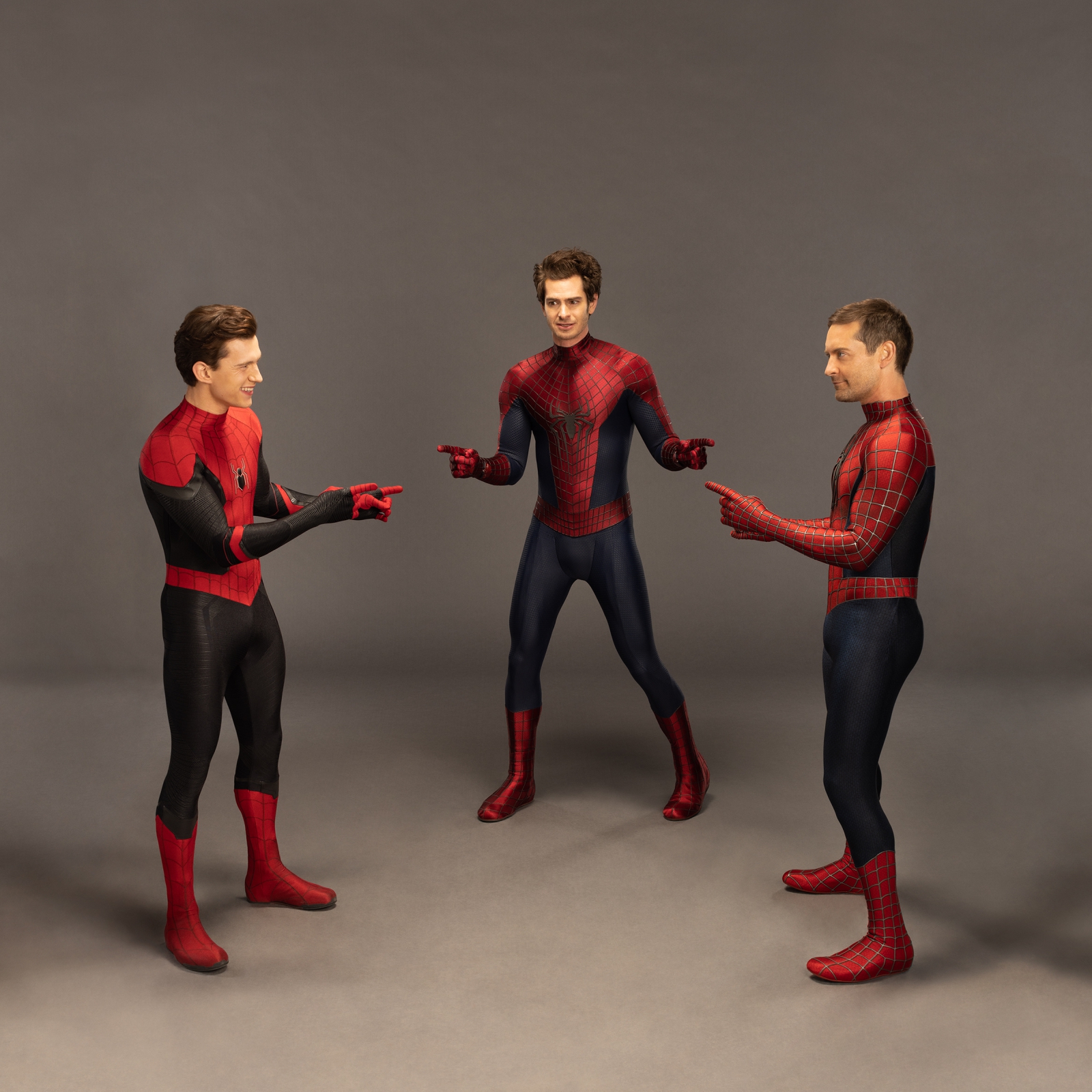 Tom Holland, Andrew Garfield และ Tobey Maguire ร่วมกันทำ Meme จากเบื้องหลัง Spider-Man: No Way Home