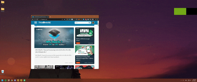 การใช้งานก็ง่ายมาก เราแค่เอาเมาส์ไปชี้ไว้ที่ "ไอคอน Maximize" (ไอคอนรูปสี่เหลี่ยมที่อยู่ตรงมุมขวาบนของหน้าต่าง) จากนั้นหน้าเมนู Snap ก็จะปรากฏขึ้น เราก็เลือกตำแหน่งที่ต้องการได้เลย