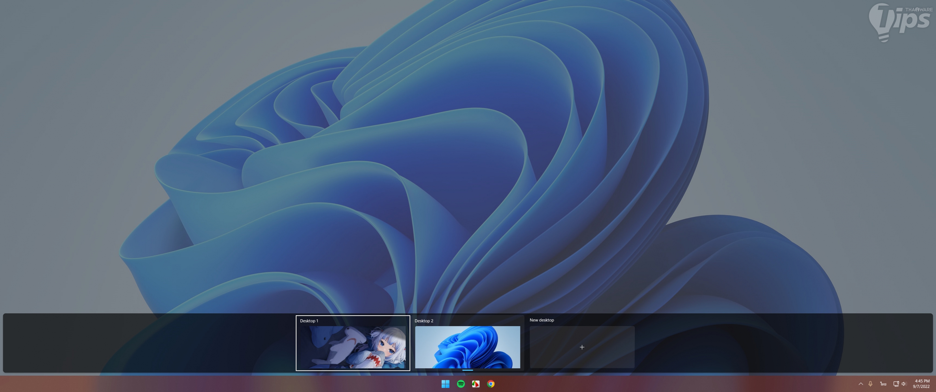 ลูกเล่นเดสก์ท็อปเสมือน (Virtual Desktop) หรือ Task View เป็นลูกเล่นที่ Microsoft ใส่เข้ามาครั้งแรกตั้งแต่ในระบบปฏิบัติการ Windows 10 แต่ว่าใน Windows 11 มันได้รับการปรับปรุงการทำงานให้ดียิ่งขึ้นกว่าเดิม โดยในตอนนี้ ผู้ใช้สามารถเลือกเปลี่ยนภาพพื้นหลังให้ Virtual Desktop แยกกันได้อย่างอิสระแล้ว ช่วยให้เราแยกแยะหน้าต่างที่ต้องการเรียกใช้งานได้ง่ายขึ้น