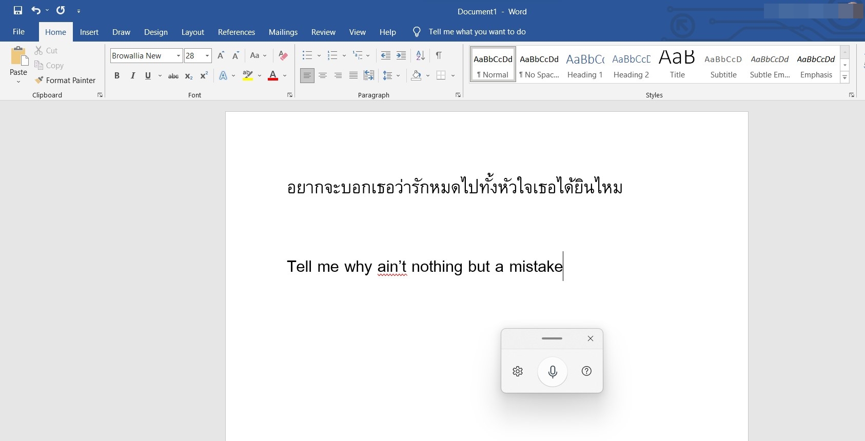 ตัวอย่างการพิมพ์ด้วยเสียง ทั้งภาษาไทยและภาษาอังกฤษ