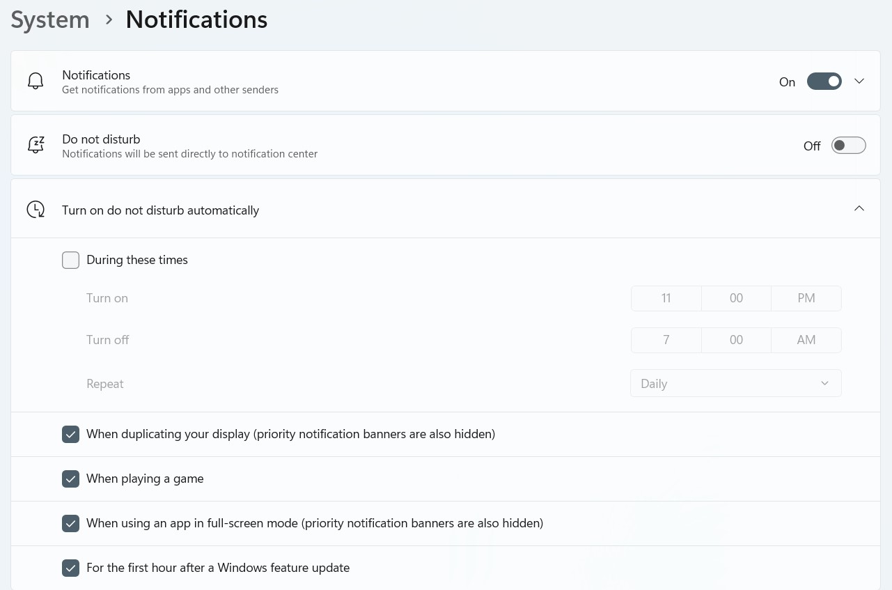 หากต้องการทำงานแบบมีสมาธิยาว ๆ การเปิดใช้งาน "โหมด Do not Disturb" ก็ช่วยได้ ซึ่งการอัปเดตครั้งนี้ ทำให้ตั้งเวลาเปิดใช้งาน Do not Disturb ได้แล้ว ! นอกจากจะเลือกให้เปิด-ปิดตามวันและเวลาที่ต้องการ ยังเลือกเมื่อใช้งานแบบต่าง ๆ ได้ เช่น เปิด Do not Disturb เมื่อกำลังใช้งานแอปพลิเคชันใด ๆ ในรูปแบบหน้าจอ Full-Screen, เปิด Do not Disturb ขณะเล่นเกม เป็นต้น