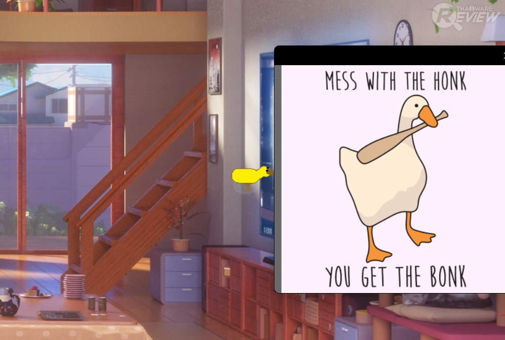 ทีเด็ดอีกอย่างคือ ถ้าเรารู้สึกว่าห่านตัวเดียวมันยังวายป่วงไม่พอ ก็สามารถเปิดซ้ำ เรียกห่านออกมาได้เป็นอนันต์ แต่ถ้าเรียกเยอะเกินไป ห่านก็อาจจะกระตุกได้นะ ขึ้นกับสเปกคอมพิวเตอร์ที่ใช้งานอยู่ด้วย