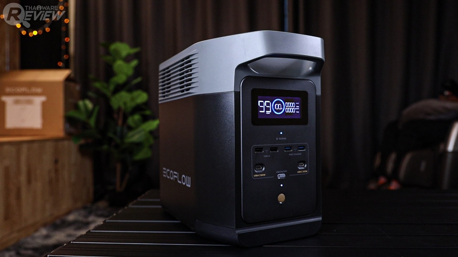Ecoflow Delta 2 เป็นผลิตภัณฑ์ตัวใหม่ที่ถูกอัปเกรดประสิทธิภาพจาก Delta รุ่นเดิม โดยดีไซน์ภายนอกอาจจะดูไม่ต่างจากเดิม ตัวเครื่องมีขนาดเล็กลง มาพร้อมกับความจุขนาด 1024Wh สามารถจ่ายไฟได้ 1800W แบบสบาย ๆ ใช้เครื่องใช้ไฟฟ้าทั่วไปภายในบ้านได้เกือบ 90% สามารถเปิดโหมด X-Boost เพื่อเพิ่มกำลังไฟได้สูงถึง 2400W ทำให้ใช้เครื่องใช้ไฟฟ้าได้มากขึ้นกว่าเดิม
