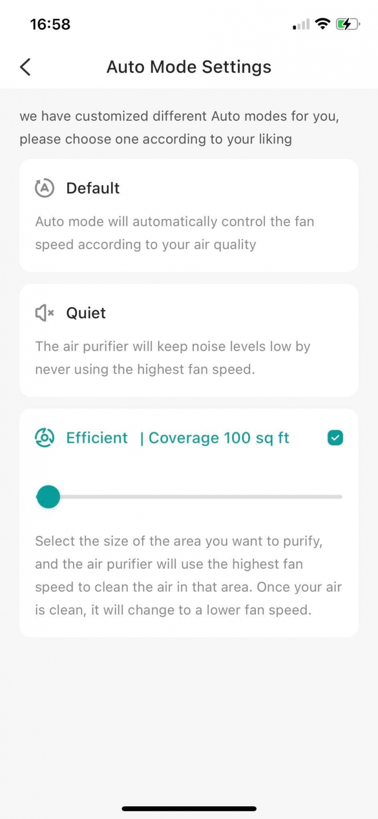 อีกอย่างหนึ่งก็คือถ้าจะเปิดใช้ "โหมดอัตโนมัติ (Auto Mode)" ภายในตัวแอปพลิเคชัน VeSync สามารถปรับแต่งได้ละเอียดมากกว่า โดยเราสามารถที่จะกำหนดให้เครื่องฟอกโฟกัสการทำงานให้ครอบคลุมอาณาบริเวณ ตารางฟุตที่เราต้องการได้เลย มันจะเปิดโหมดความแรงสูงสุด และ จะปรับระดับลงเมื่อพื้นที่มีอากาศบริสุทธิ์อยู่ในระดับดีแล้ว