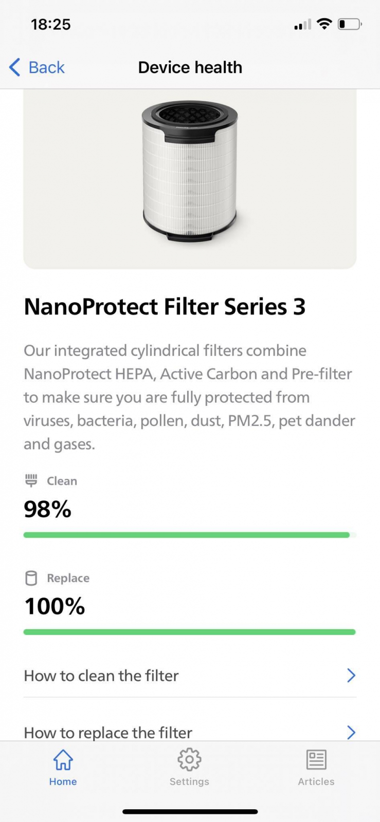 ในเครื่องฟอกอากาศ Philips 1000i Series ก็มีเช่นกันและเราสามารถตรวจสอบตัว Pre Filter หรือตัวกรองชั้นแรกเพื่อนำมาปัดฝุ่นทำความสะอาดได้ด้วย ส่วนตัวกรอง NanoProtect HEPA เองก็มีข้อมูลอายุขัยบอกไว้เหมือนกัน