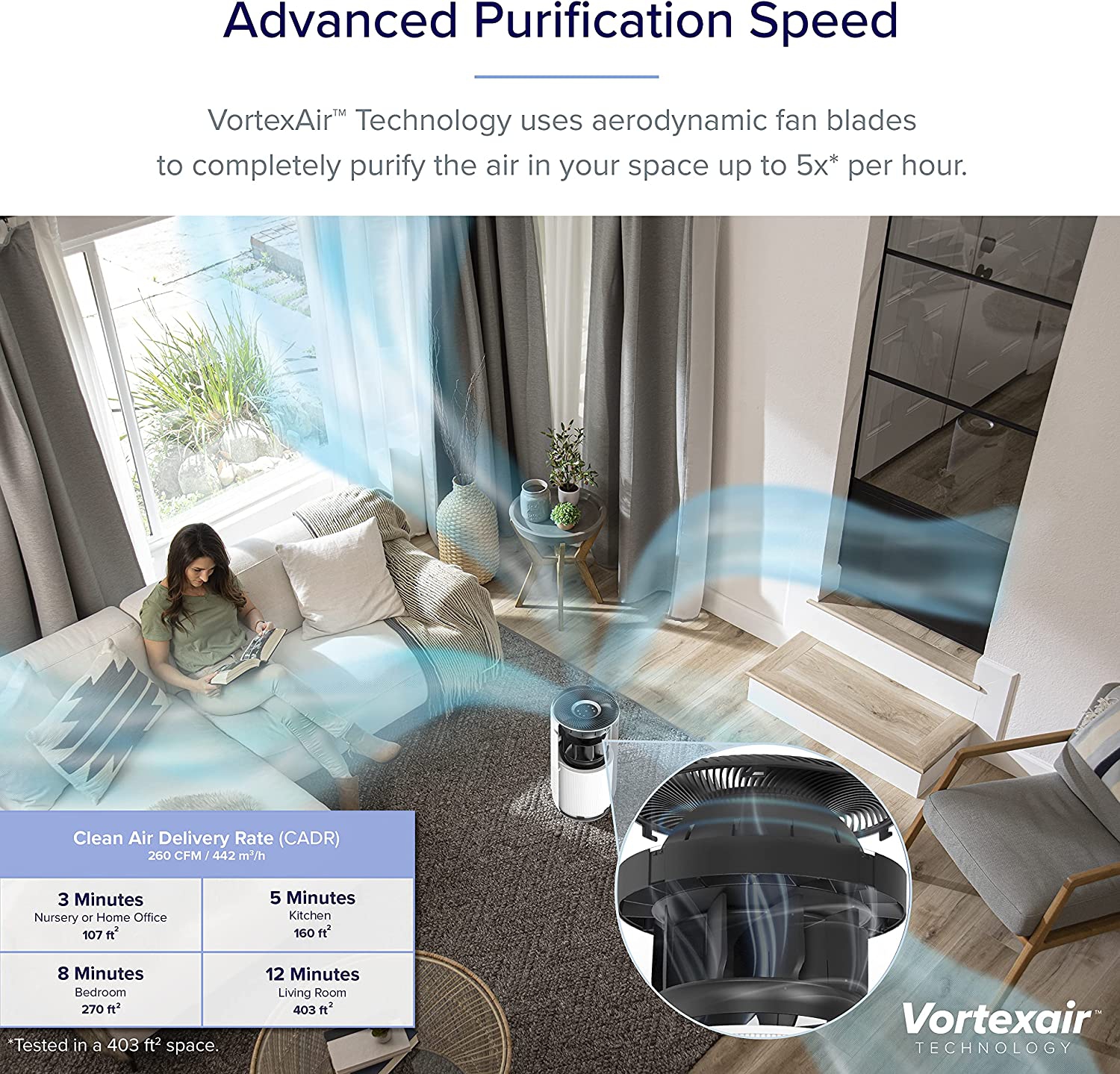 ซึ่งพระเอกในเรื่องนี้ก็น่าจะเป็นเพราะเทคโนโลยี VortexAir™ Technology ที่ได้รับการออกแบบเฉพาะสำหรับเครื่องฟอกอากาศแบรนด์ Levoit ทำให้มันสามารถปล่อยอากาศให้หมุนเวียนผ่านช่องอากาศดีไซน์แบบ Vortex หรือ กระแสลมที่หมุนวนที่คุณได้เห็นก่อนหน้า ซึ่งช่วยให้การกระจายตัวของอากาศบริสุทธิ์เป็นไปได้อย่างรวดเร็วและทั่วถึงมากขึ้น