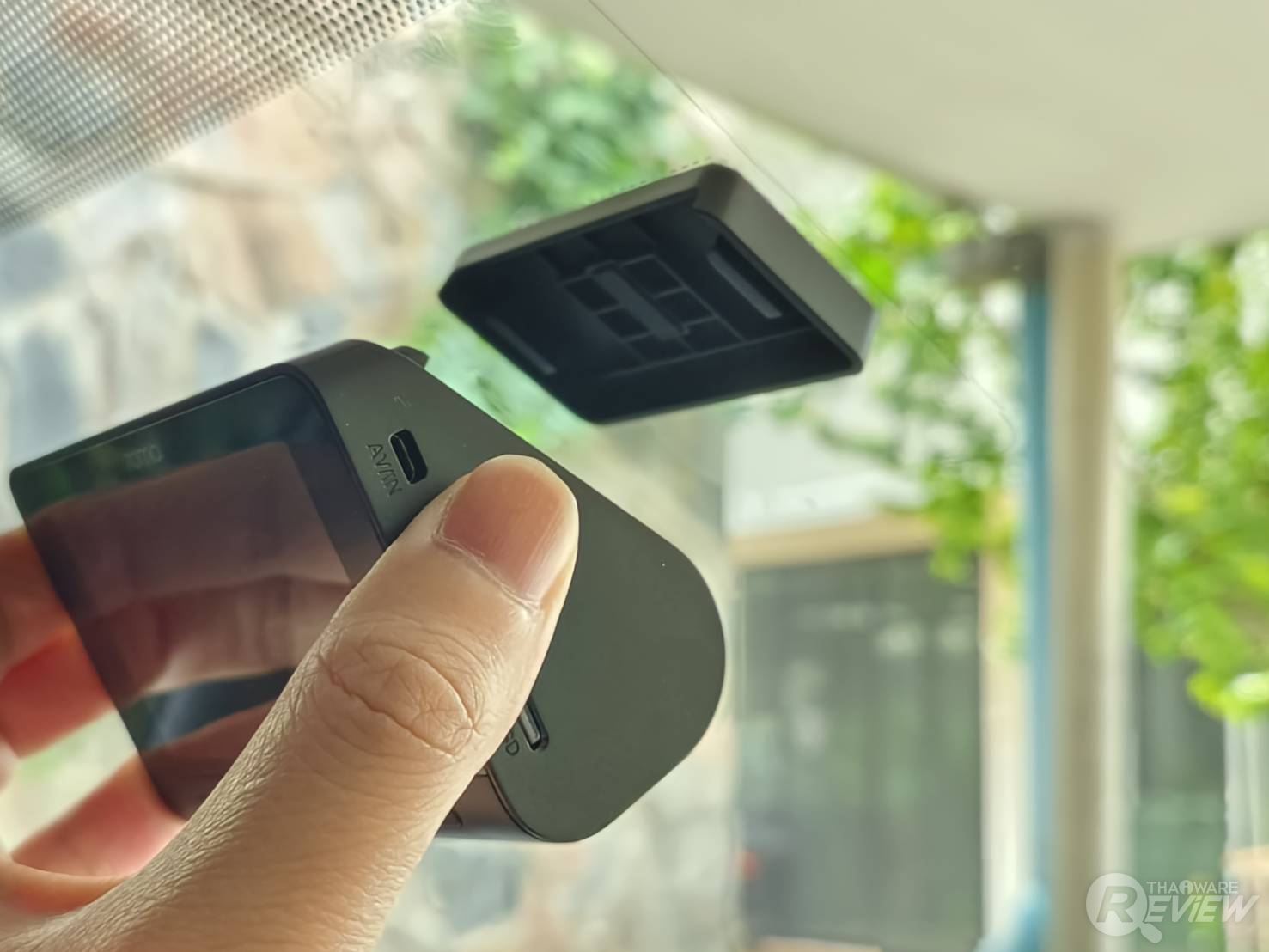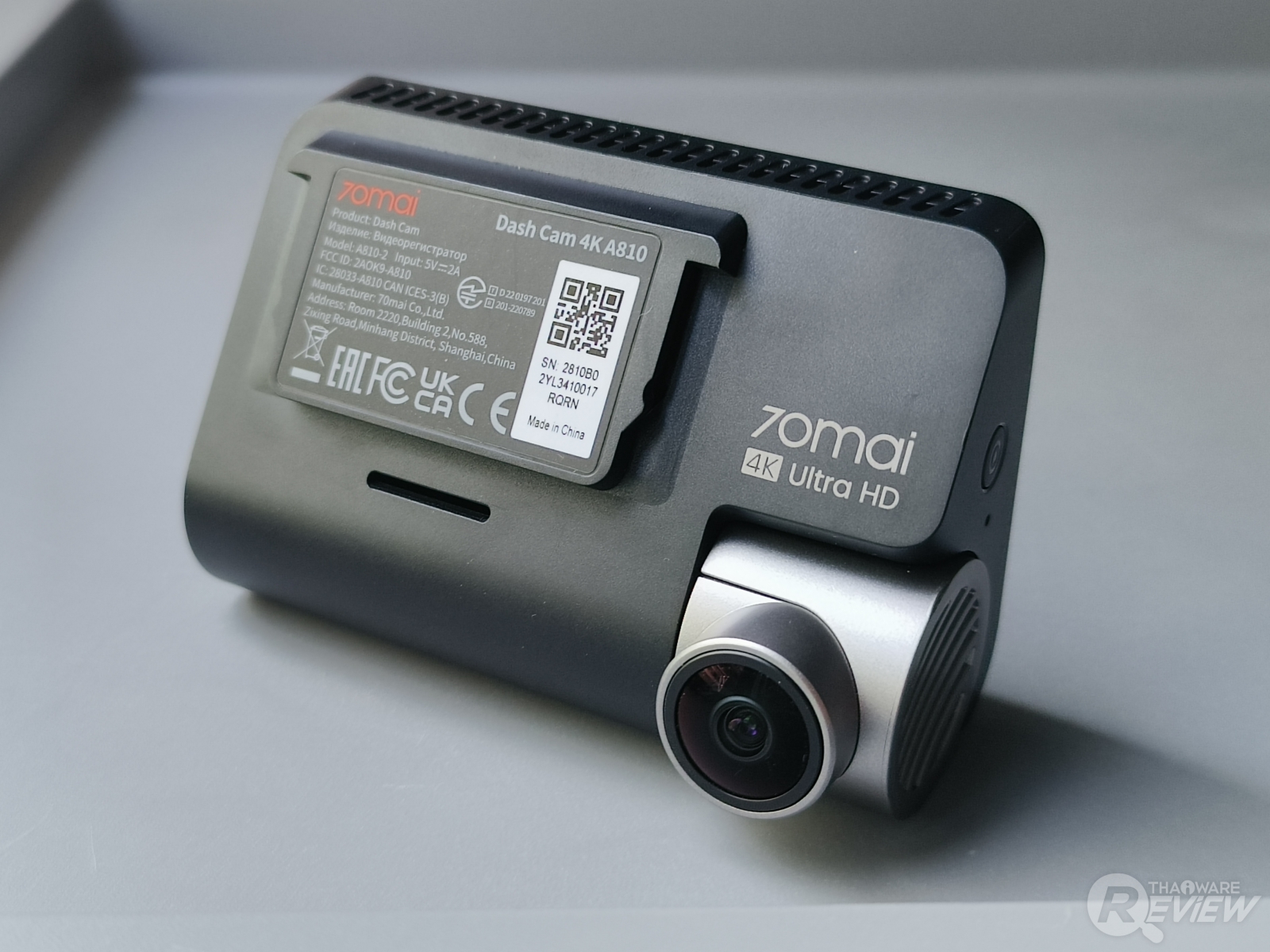 ตัวกล้องหน้าของ 70mai รุ่น A810 นี้ เป็นกล้องติดรถยนต์แบบติดกระจกตามสไตล์ 70mai มีฐานติดกระจกแยกกับตัวกล้องให้สามารถใส่-ถอดกล้องได้อย่างอิสระ เลนส์กล้องสามารถหมุนปรับได้ในแนวตั้ง ส่วนแนวนอนต้องให้แม่นเป๊ะตั้งแต่ติดครั้งแรก