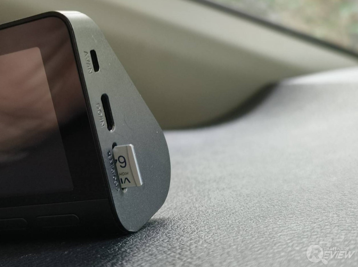 หน้าจอขนาด 3.5 นิ้ว ค่อนข้างใหญ่อยู่เหมือนกัน มีปุ่มกดใช้งาน 5 ปุ่มด้วยกัน (รวมปุ่มพาวเวอร์) ช่องพอร์ตต่าง ๆ อยู่ด้านขวาของกล้อง การจัดเรียงค่อนข้างดี ช่อง microSD ไม่มีฝาปิด แต่ใช้งานในรถอยู่แล้ว ก็ไม่ต้องระวังน้ำหรือฝุ่นเข้าตัวเครื่อง
