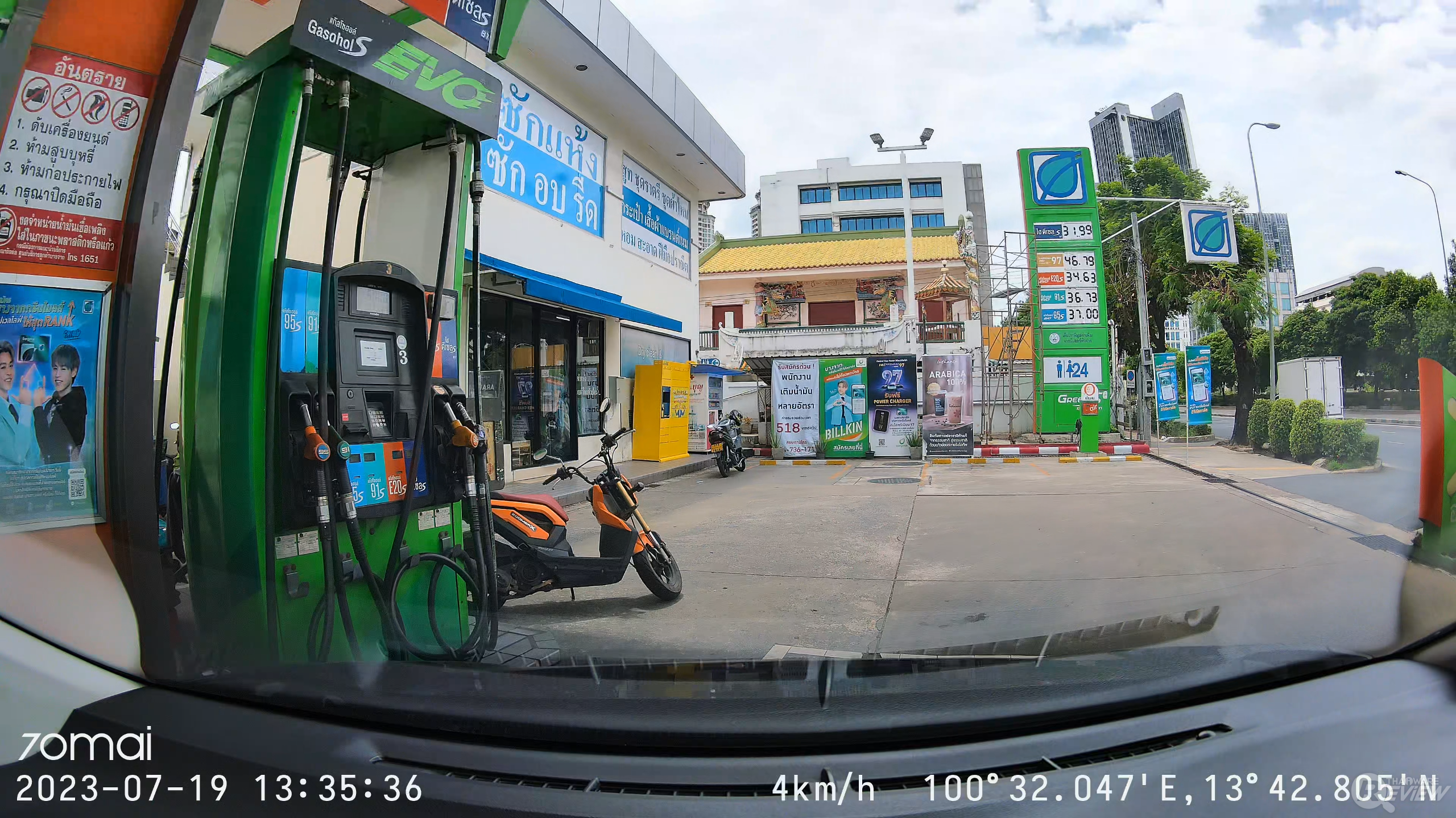 ลองยกตัวอย่างรายละเอียดอีกภาพหนึ่งมาให้ดู ภายในปั๊มเล็ก ๆ ตัวหนังสือเยอะไปหมด เราก็ยังเห็นตัวอักษรในระยะต่าง ๆ ได้อย่างคมชัด