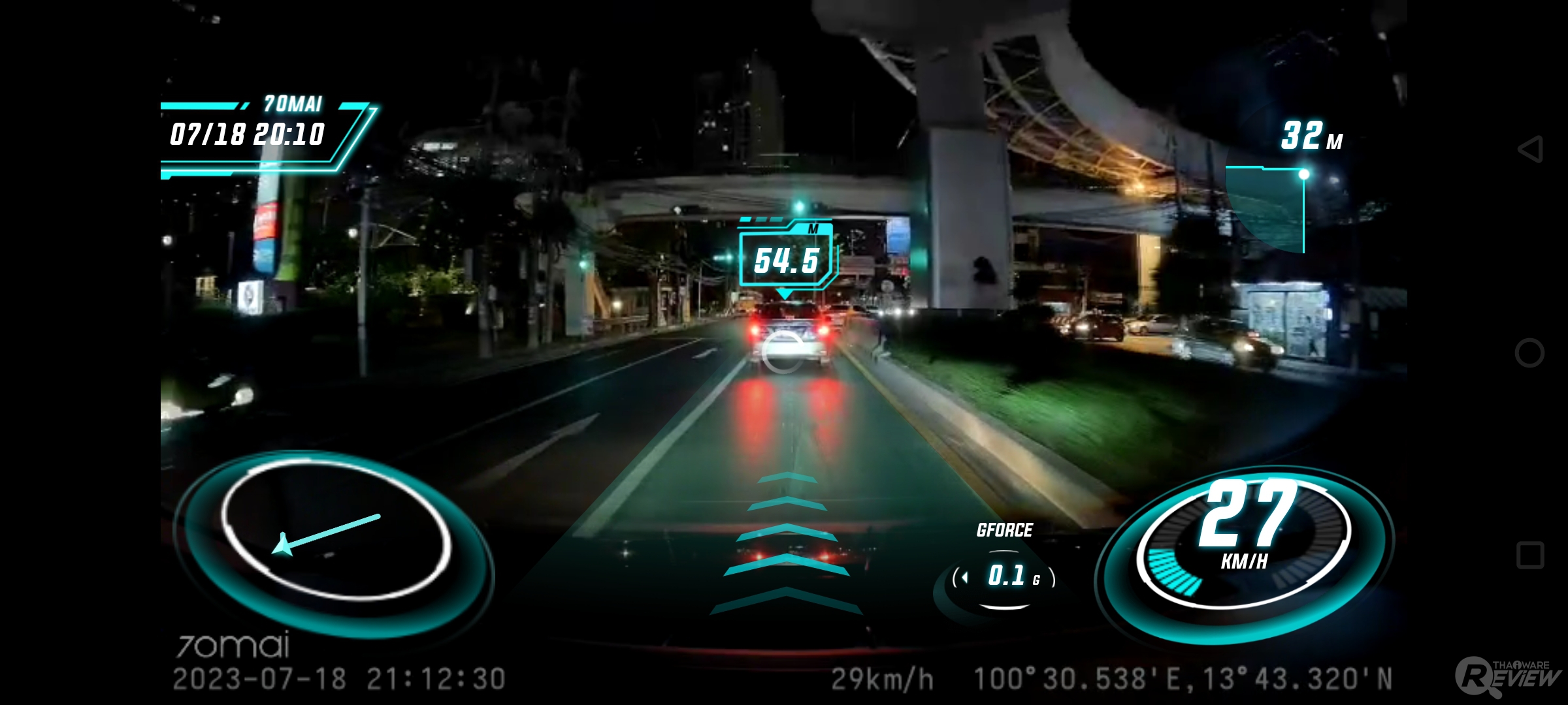 ตอนกลางคืนถือว่าเป็นช่วงปราบเซียนของกล้องติดรถยนต์เลยทีเดียว ซึ่งในกล้องรุ่นนี้ แว่บแรกที่เห็นคลิปที่บันทึกมาได้ เราค่อนข้างว้าวเลยทีเดียว