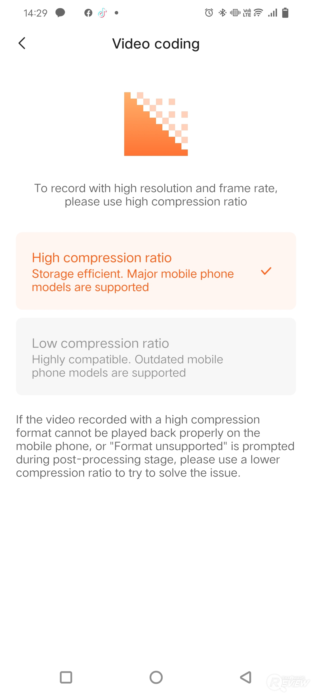 มีอีกกรณีน่ารู้ หากเราใช้มือถือหรือคอมพิวเตอร์รุ่นเก่ามาก อาจจะไม่สามารถรันไฟล์วิดีโอที่บันทึกมาได้ ให้ทำการเปลี่ยน Video coding แบบ "Low compression ratio" แทน แต่ผลที่ตามมาก็คือไฟล์จะใหญ่ขึ้น ทำให้การ์ดสามารถเก็บไฟล์ได้น้อยลง