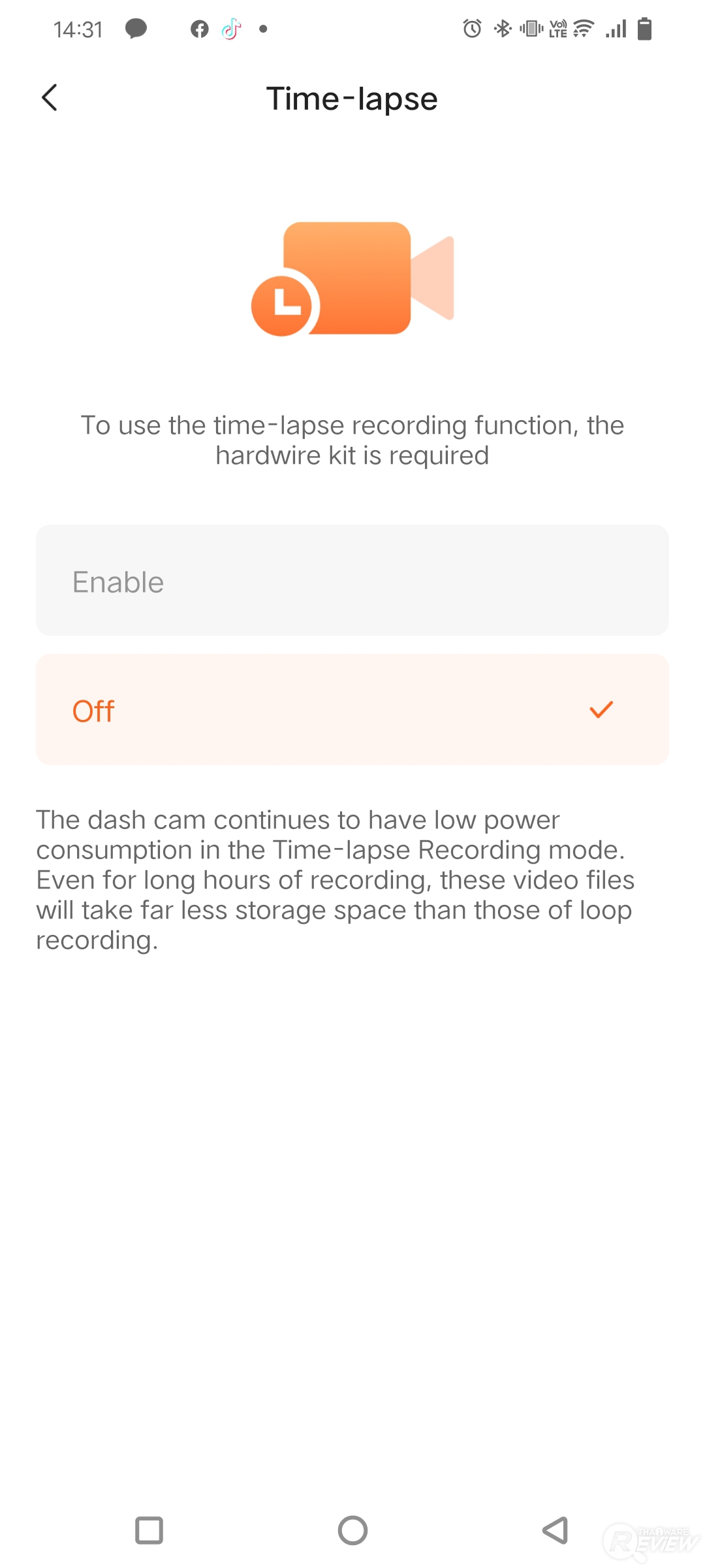 หรือถ้าอยากจะถ่ายยาว ๆ ตลอดระหว่างการจอดรถเลย ก็สามารถเปิดโหมด Time-lapse ได้ กล้องจะทำการบันทึกวิดีโอตลอดเวลาตั้งแต่เราดับเครื่องยนต์ ซึ่งการบันทึกวิดีโอแบบ Time-lapse จะเป็นการบันทึกแบบเร่งความเร็ววิดีโอ ทำให้เราสามารถบันทึกความเคลื่อนไหวได้ตลอดในรูปแบบไฟล์ที่ขนาดเล็กลง และเวลาสั้นกว่าคลิปทั่วไป แต่ระหว่างการบันทึกแบบ Time-lapse ถ้ากล้องตรวจจับแรงสั่นสะเทือนหรือความเคลื่อนไหวได้ ก็จะถูกบันทึกวิดีโอแบบปกติเช่นกัน