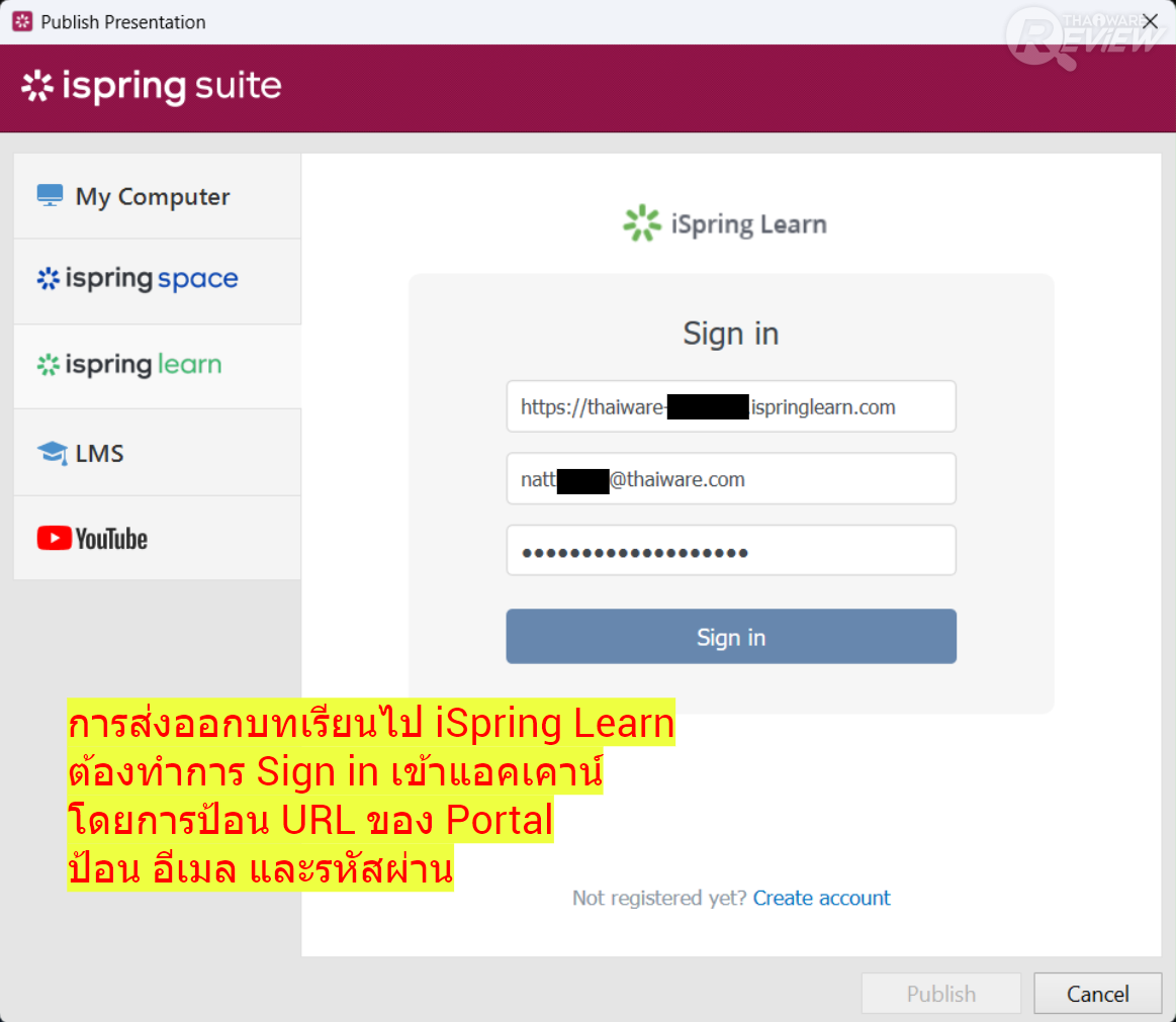 *** หมายเหตุ : สำหรับผู้ที่ซื้อลิขสิทธิ์การใช้งาน iSpring Suite ให้เปิดฟีเจอร์การใช้งานผ่านปุ่ม Sign in